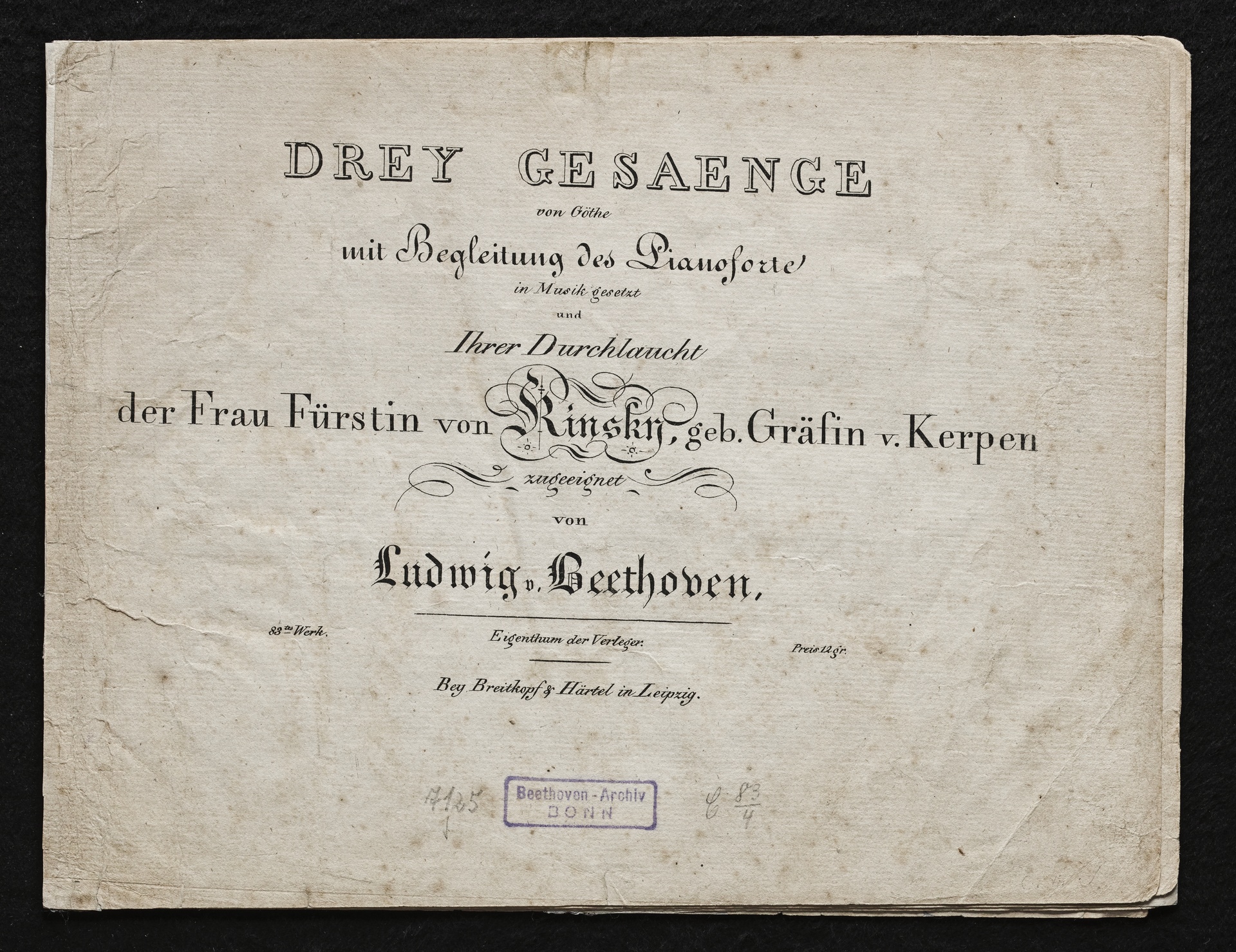 Ludwig van BeethovenJohann Wolfgang von Goethe, Gesänge für Singstimme und Klavier nach Gedichten von Johann Wolfgang von Goethe op. 83, 1-3, Breitkopf und Härtel, 1596