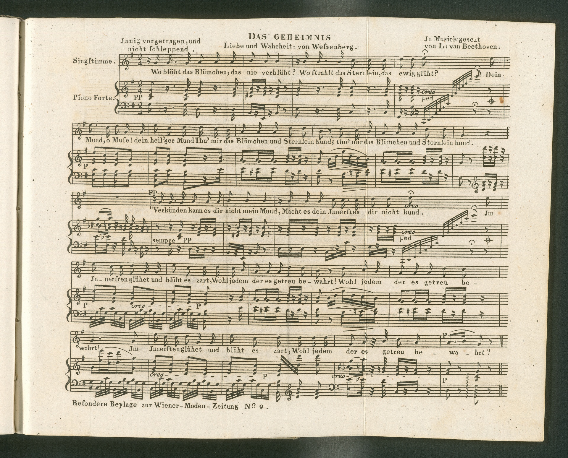 Ludwig van BeethovenIgnaz Heinrich von Wessenberg, "Das Geheimnis", Lied für Singstimme und Klavier WoO 145, Wiener Moden-Zeitung