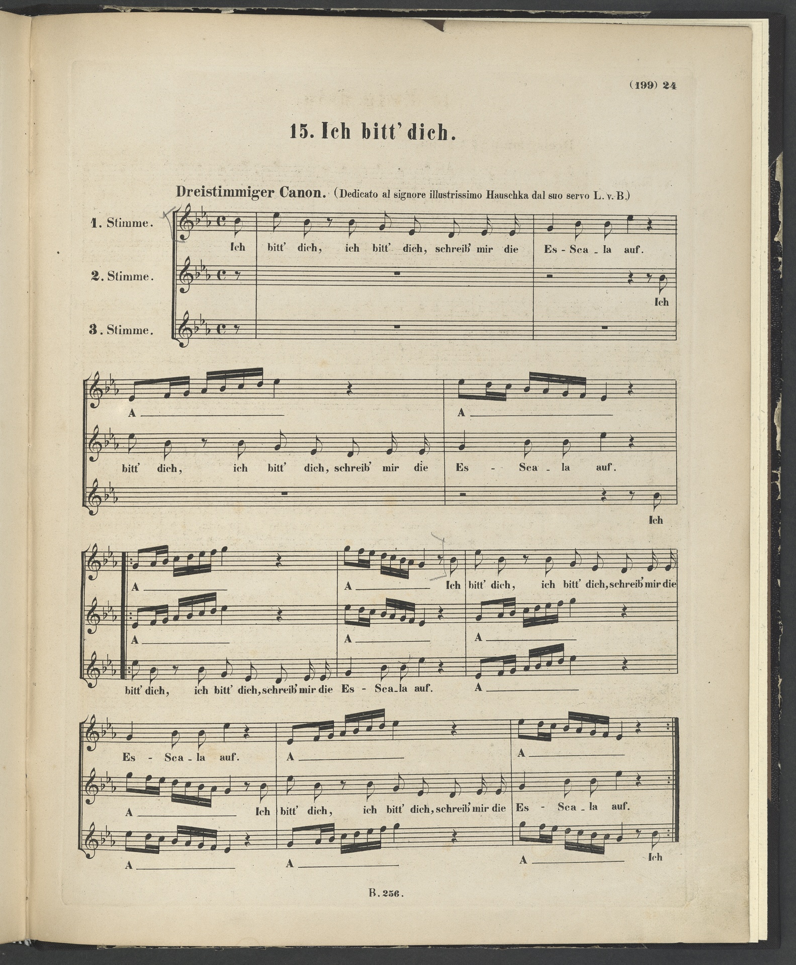 Ludwig van Beethoven, "Ich bitt' dich, schreib mir die Es-Scala auf", dreistimmiger Kanon WoO 172, Partitur, Breitkopf und Härtel, 256