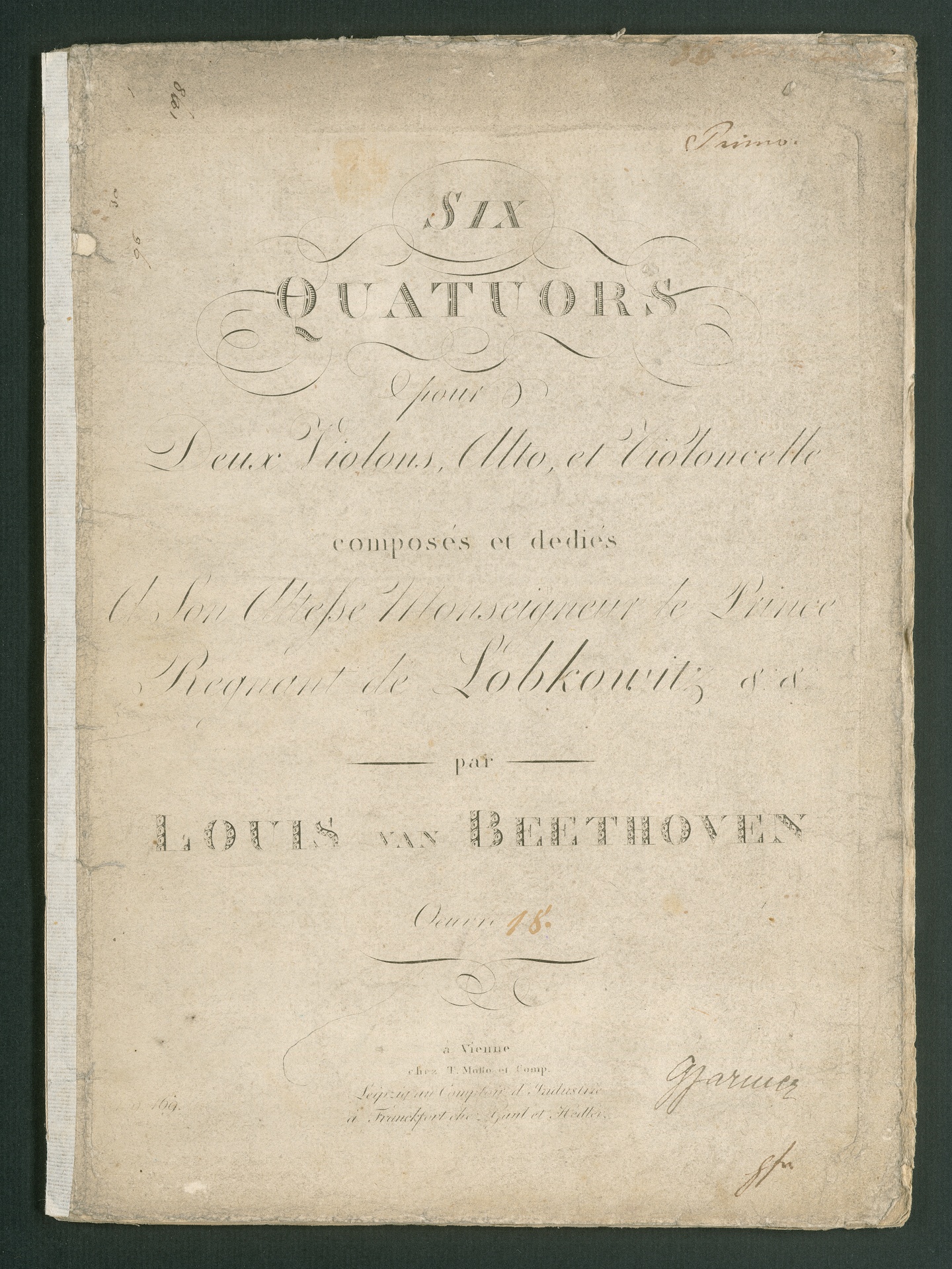 Ludwig van Beethoven, Quartette für 2 Violinen, Viola, Violoncello (F-Dur, G-Dur, D-Dur) op. 18, 1-3, Stimmen, Mollo, 959