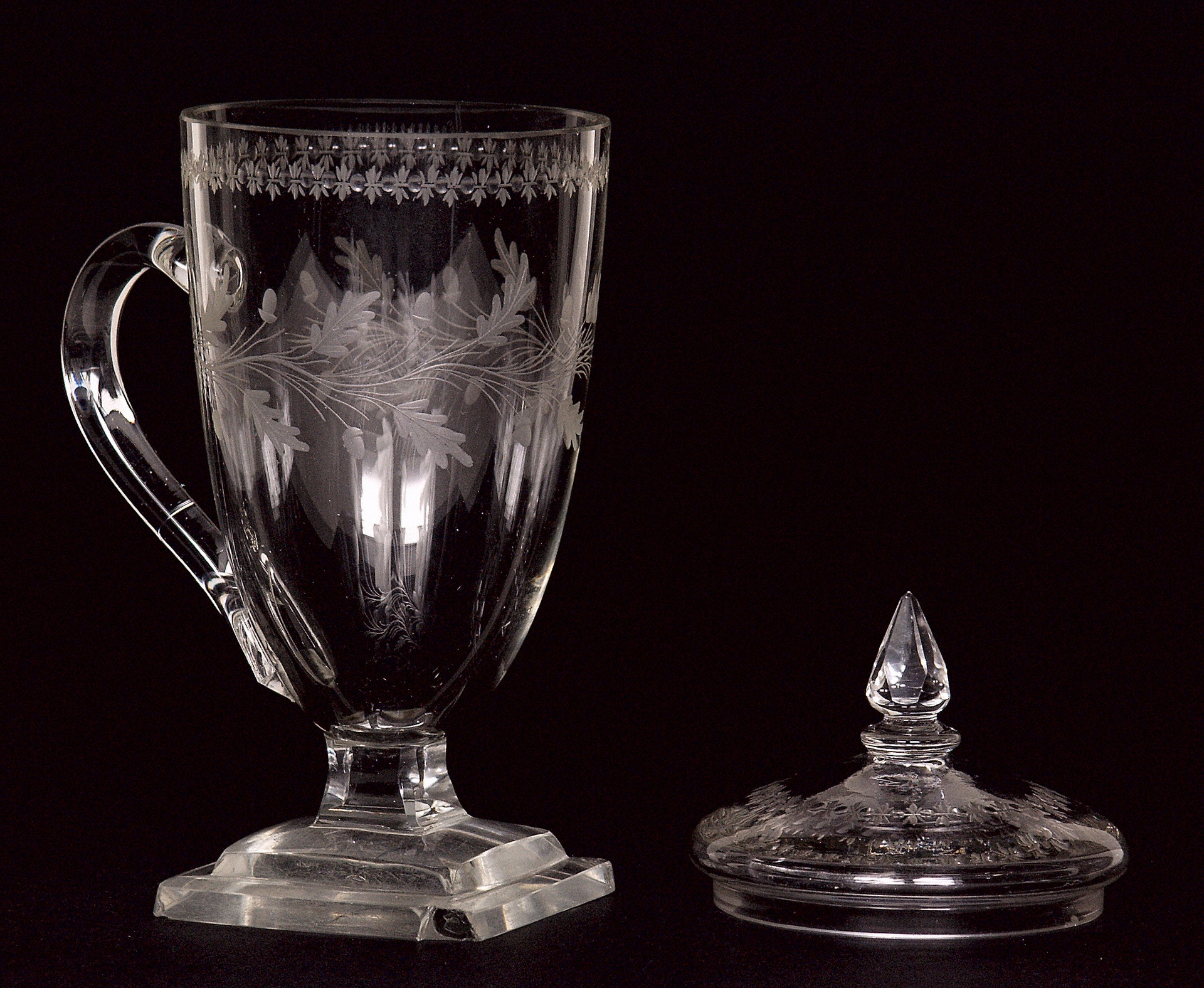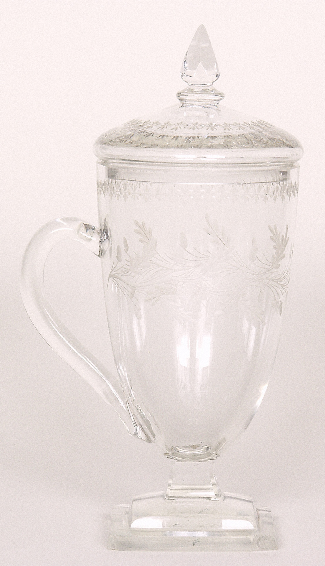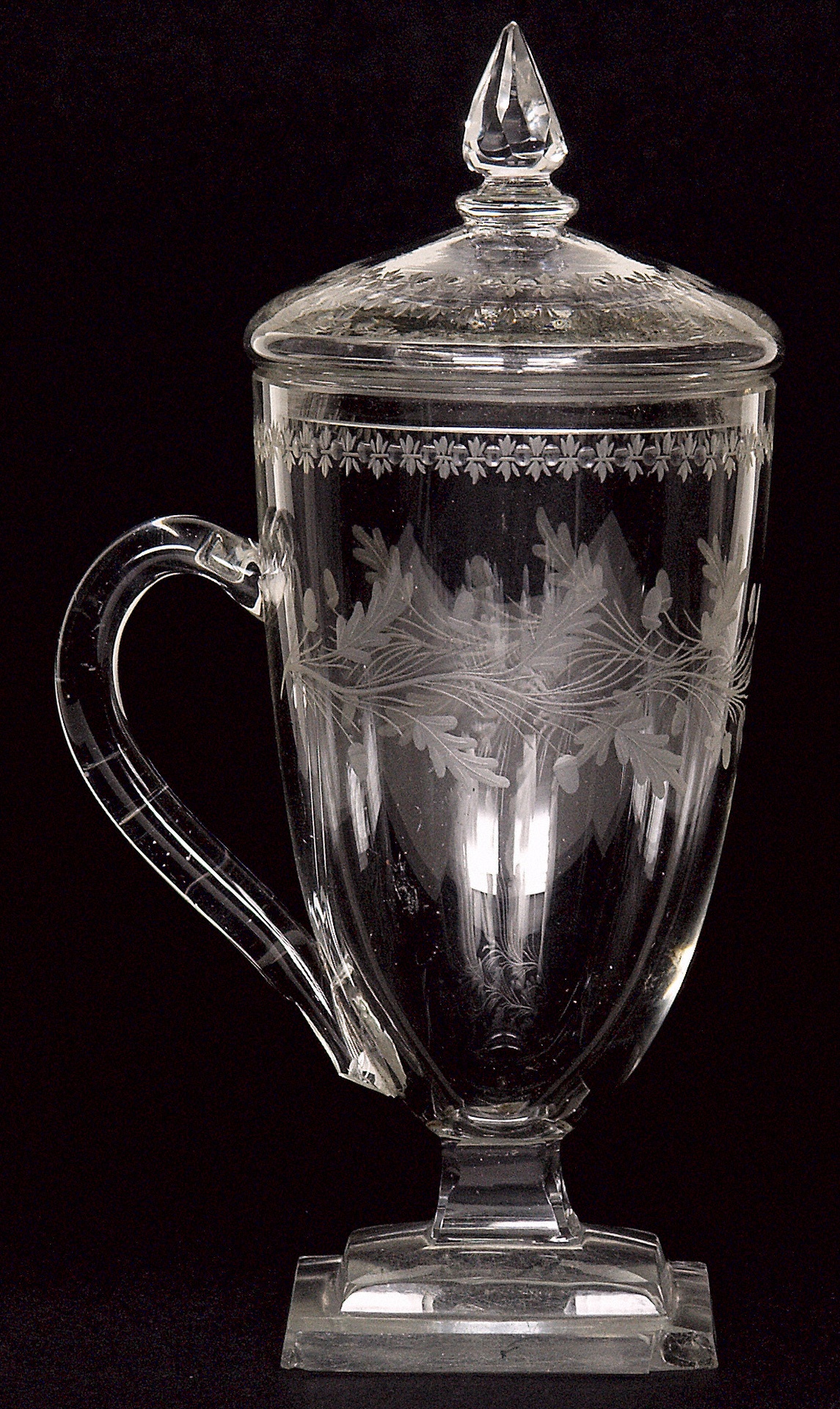 Simrock brought Wegeler a letter from Beethoven as well as the portrait of composer Blasius Höfel which had been published two years earlier by the Artaria publishing house. Beethoven had complemented the copper engraving with a personal dedication for Wegeler. As a token of his friendship and gratefulness, he also sent his school day friend this drinking glass with a lid from Bohemia.(S.B.)