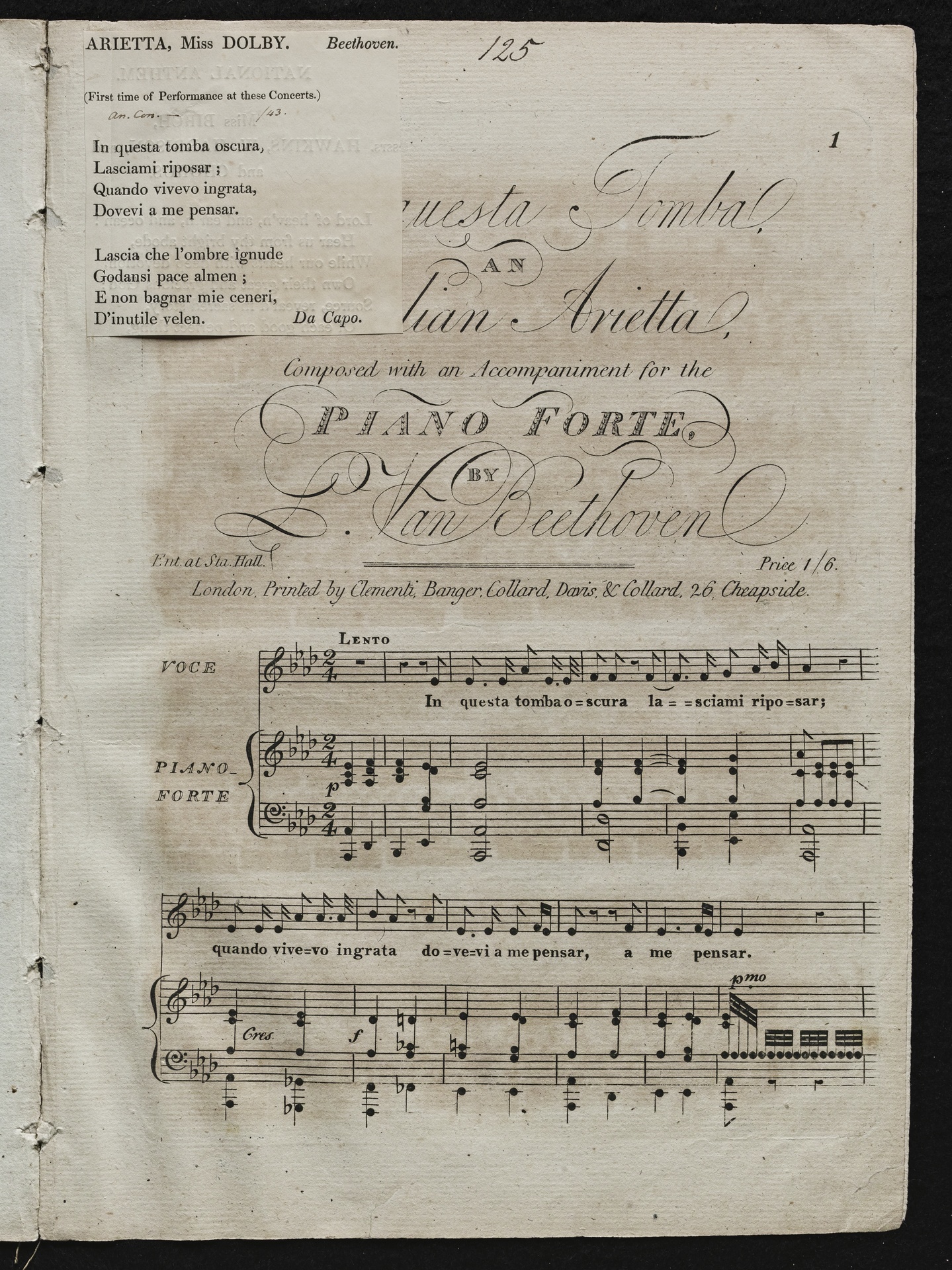 Ludwig van Beethoven, "In questa tomba oscura", Ariette für Singstimme und Klavier WoO 133, Clementi