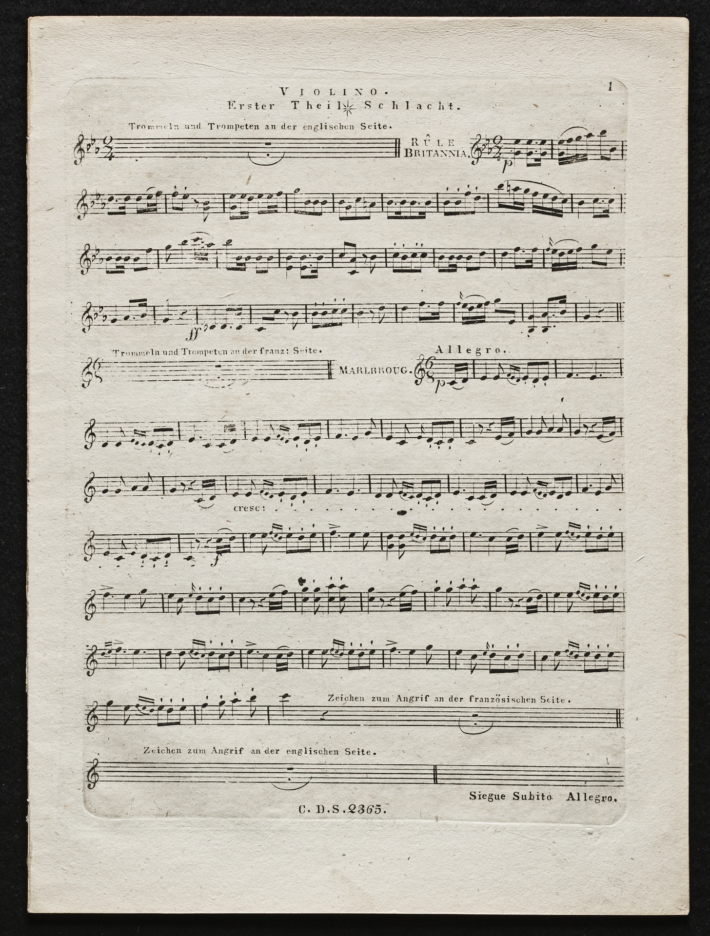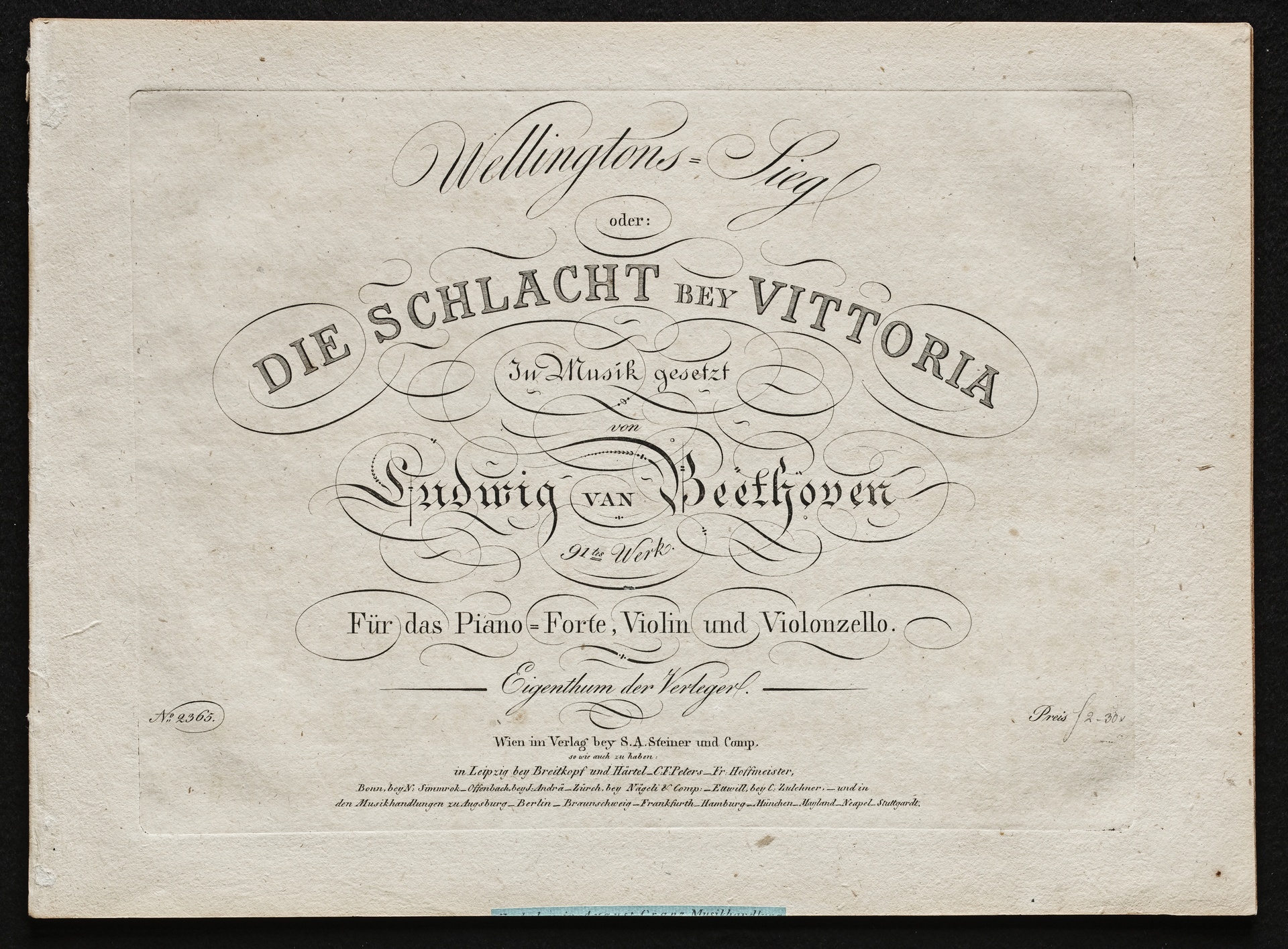 Ludwig van Beethoven, "Wellingtons Sieg oder die Schlacht bei Vittoria" für Orchester op. 91, Bearbeitung für Violine, Violoncello, Klavier, Stimmen, Steiner, 2365