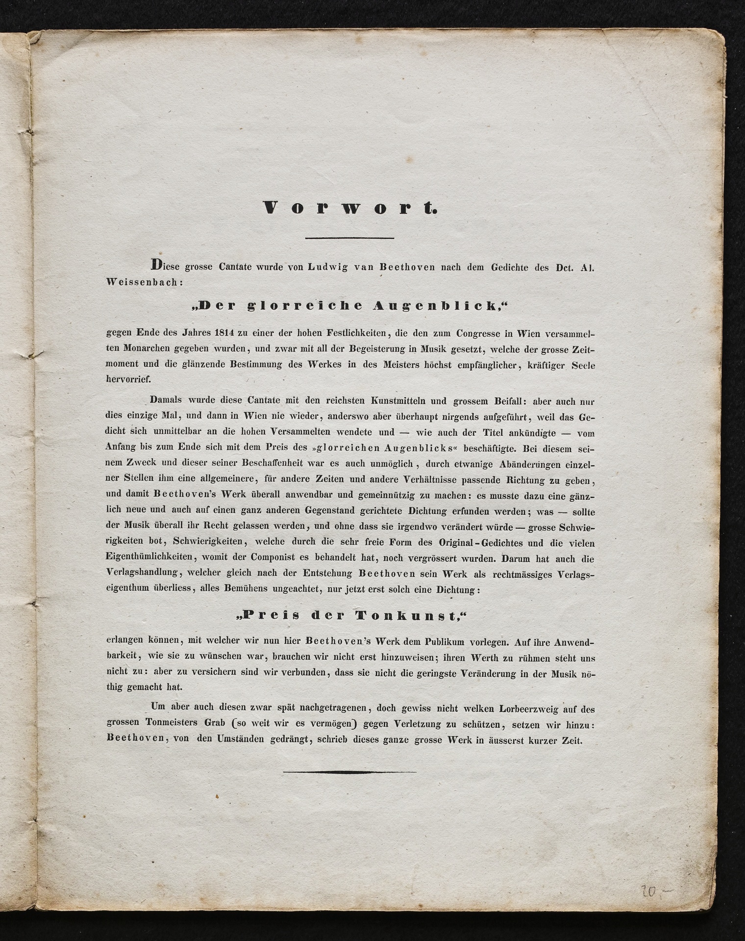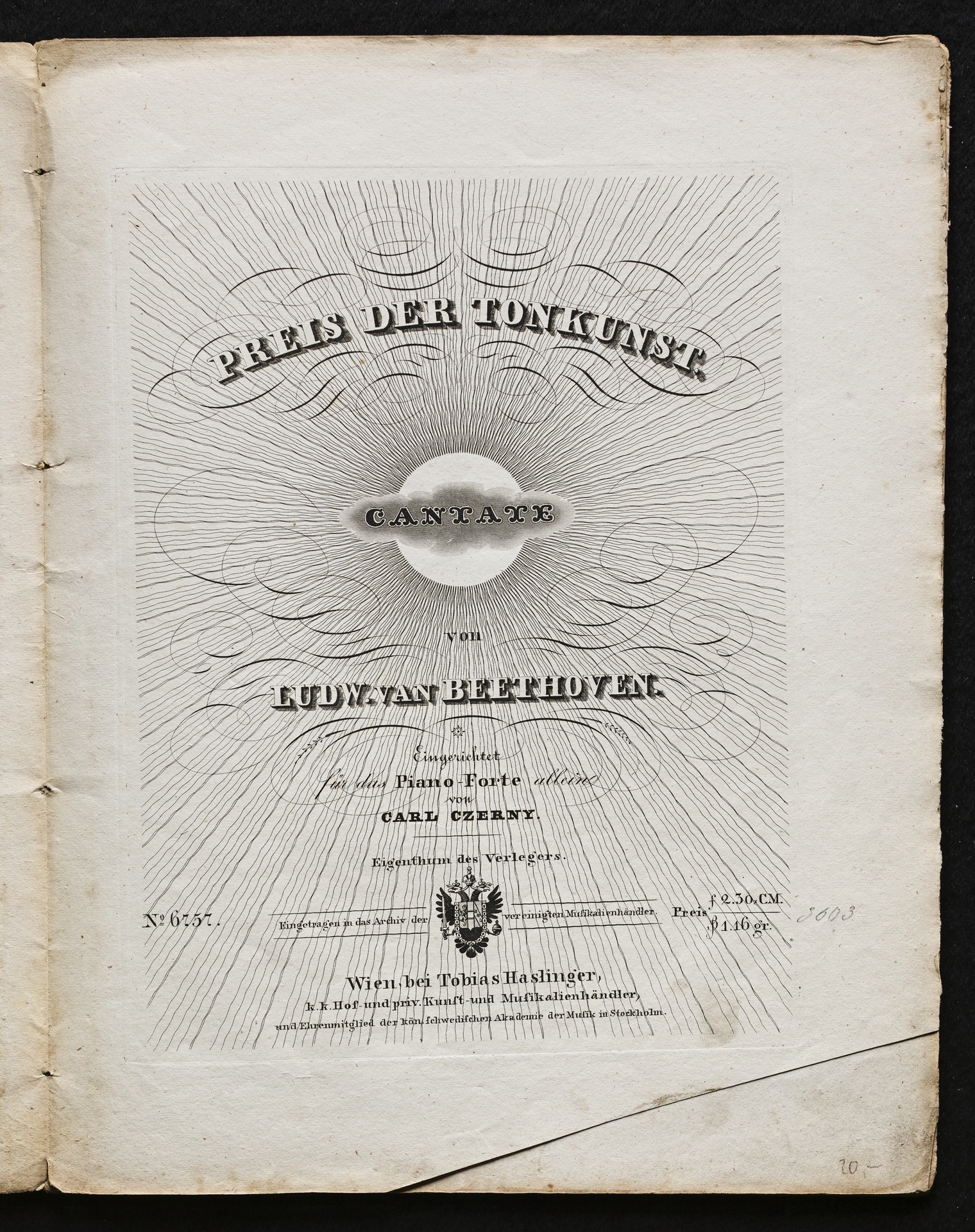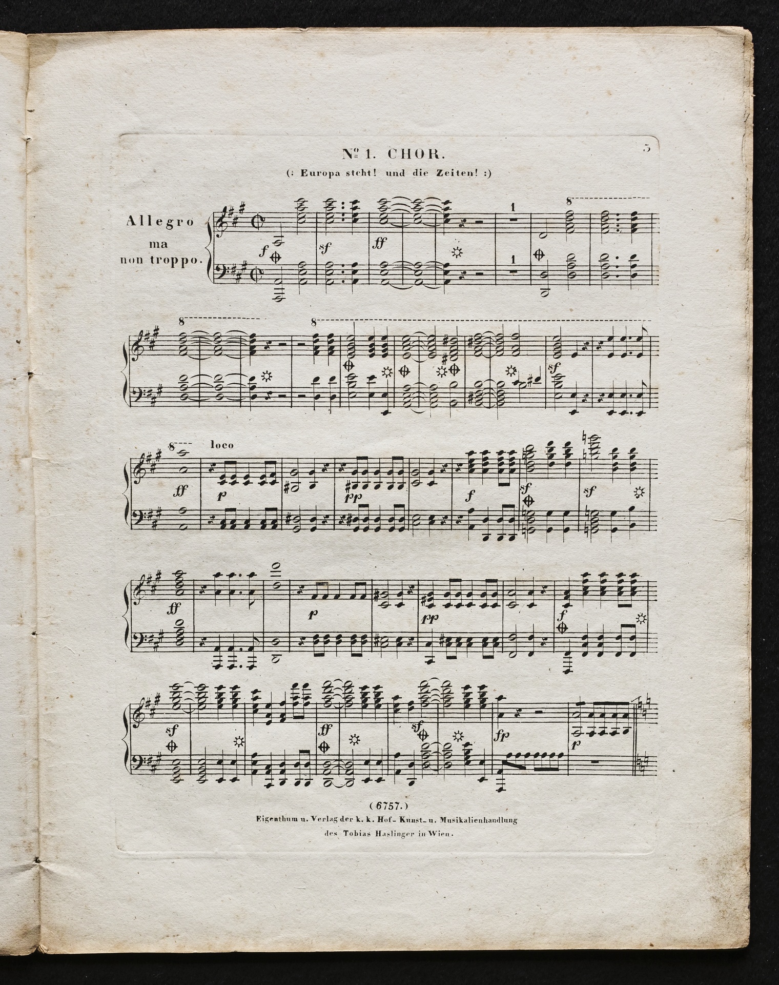 Ludwig van Beethoven, "Der glorreiche Augenblick", Kantate für 4 Solostimmen, Chor und Orchester op. 136, Bearbeitung für Klavier von Carl Czerny, Haslinger, 6757