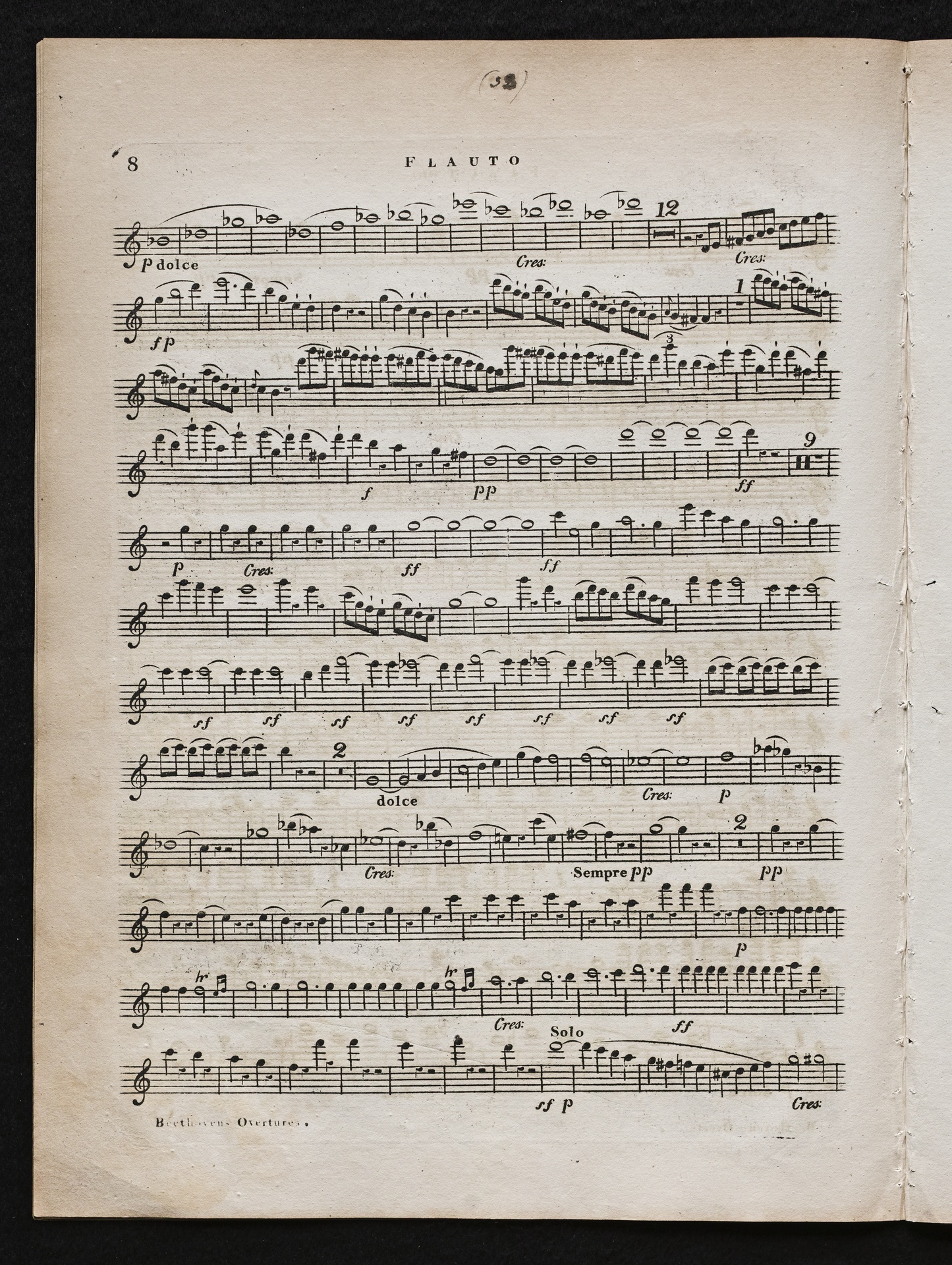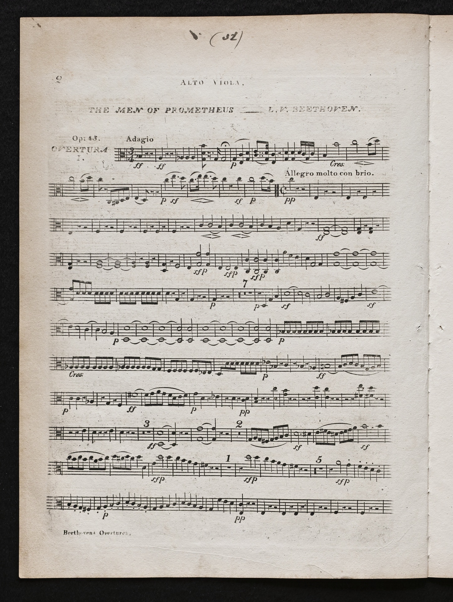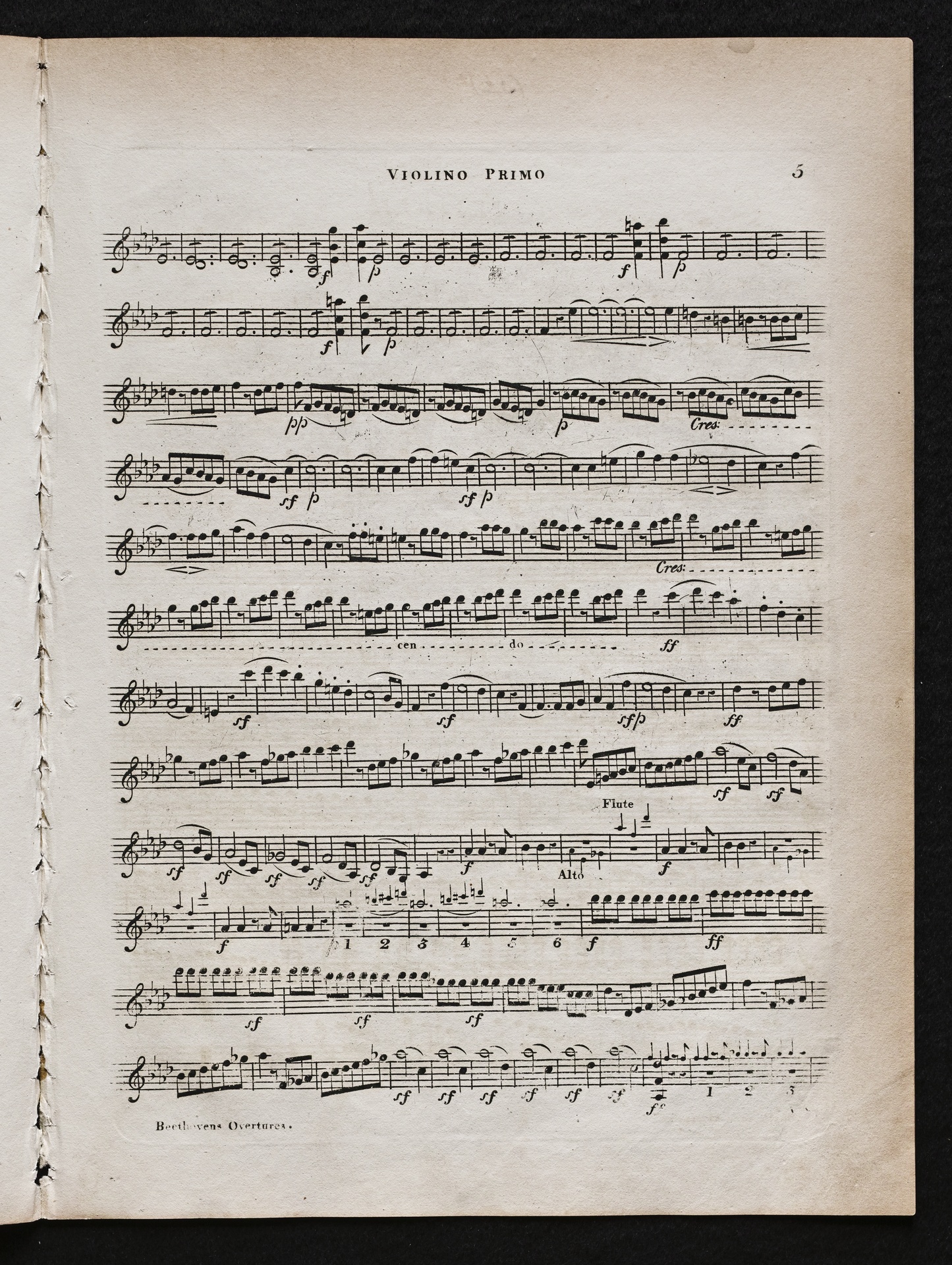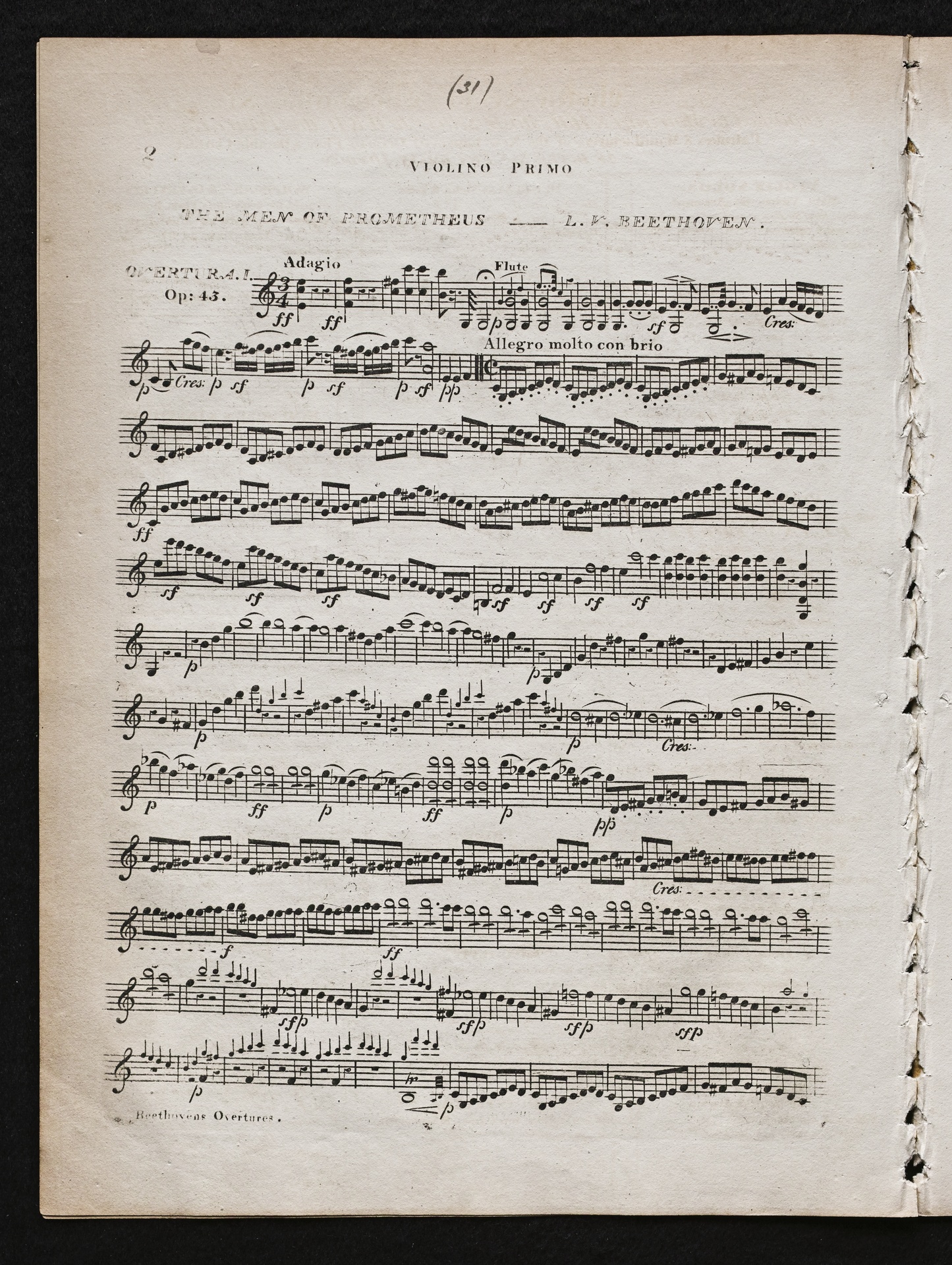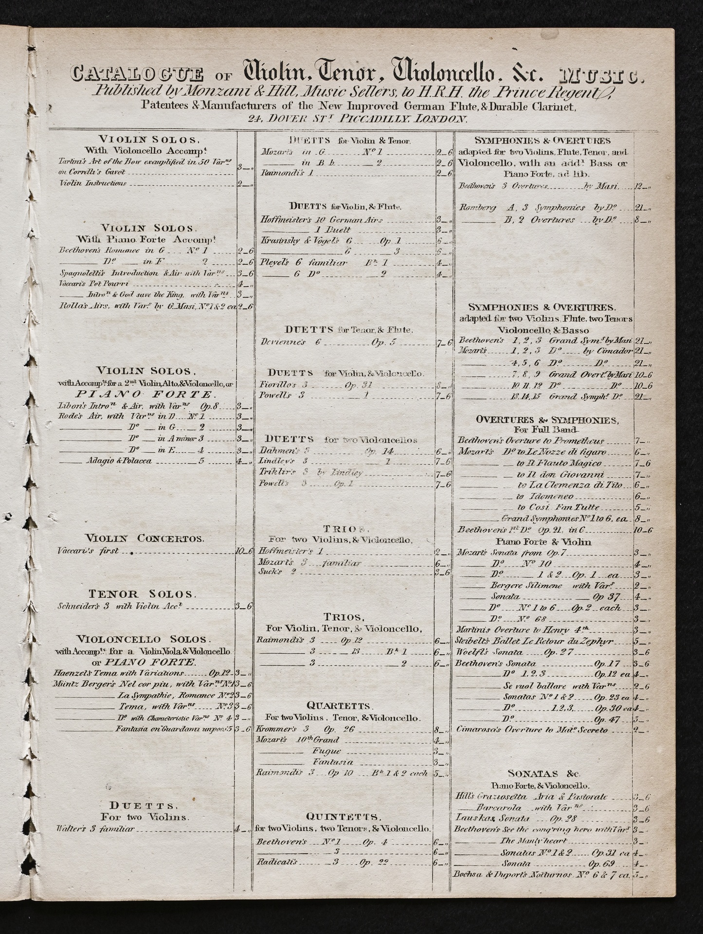 Ludwig van Beethoven, Sammlung von Ouvertüren zu op. 43, op. 84 und op. 72, Bearbeitung für Flöte, 2 Violinen, Viola, Violoncello von Girolamo Masi, Stimmen, Monzani and Hill