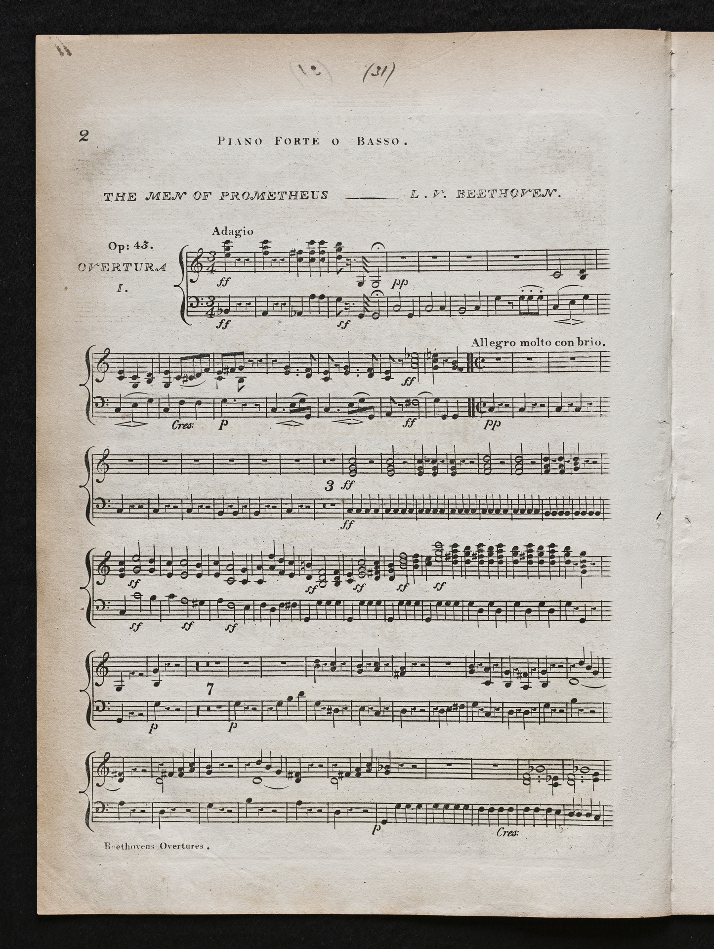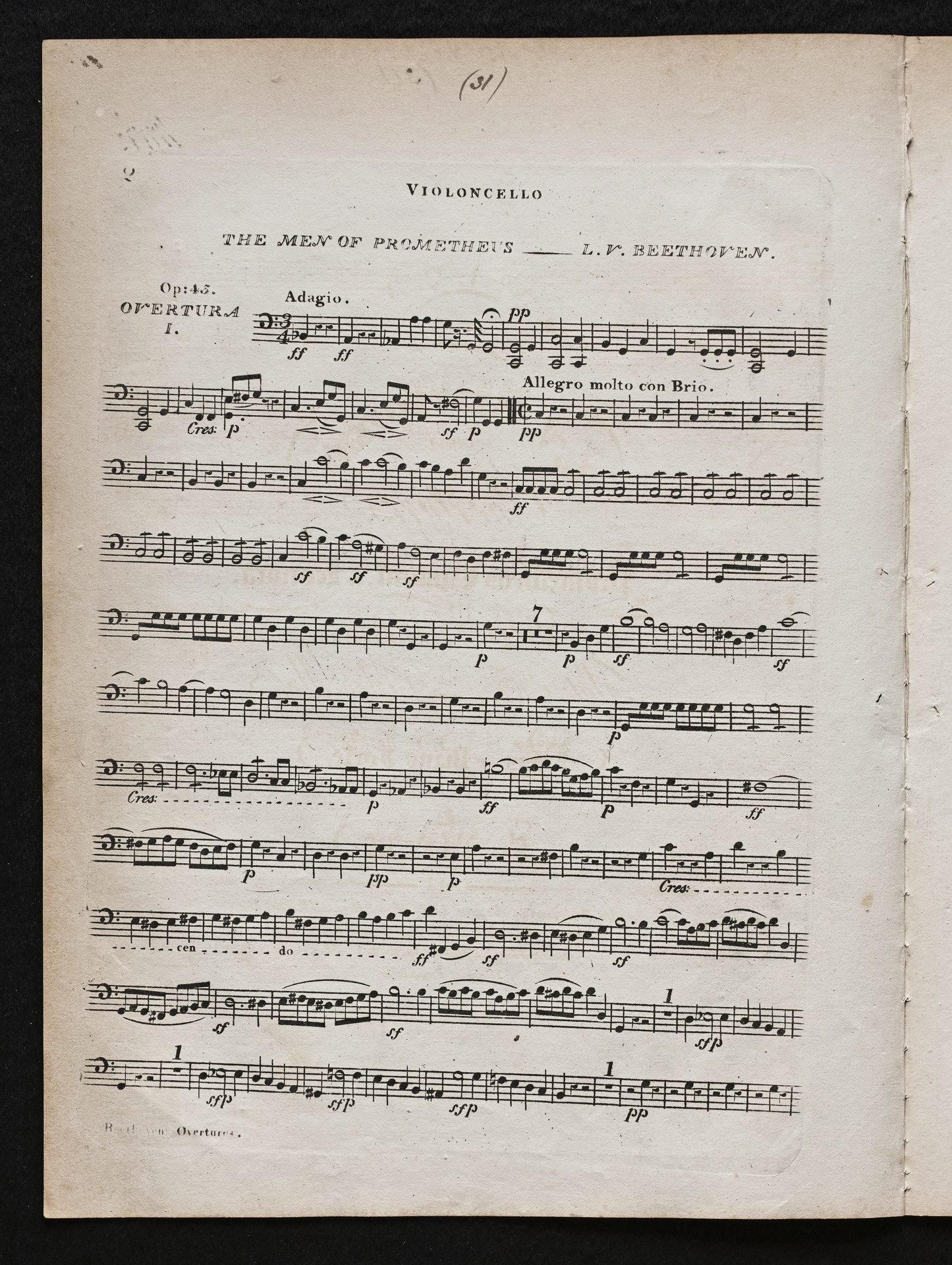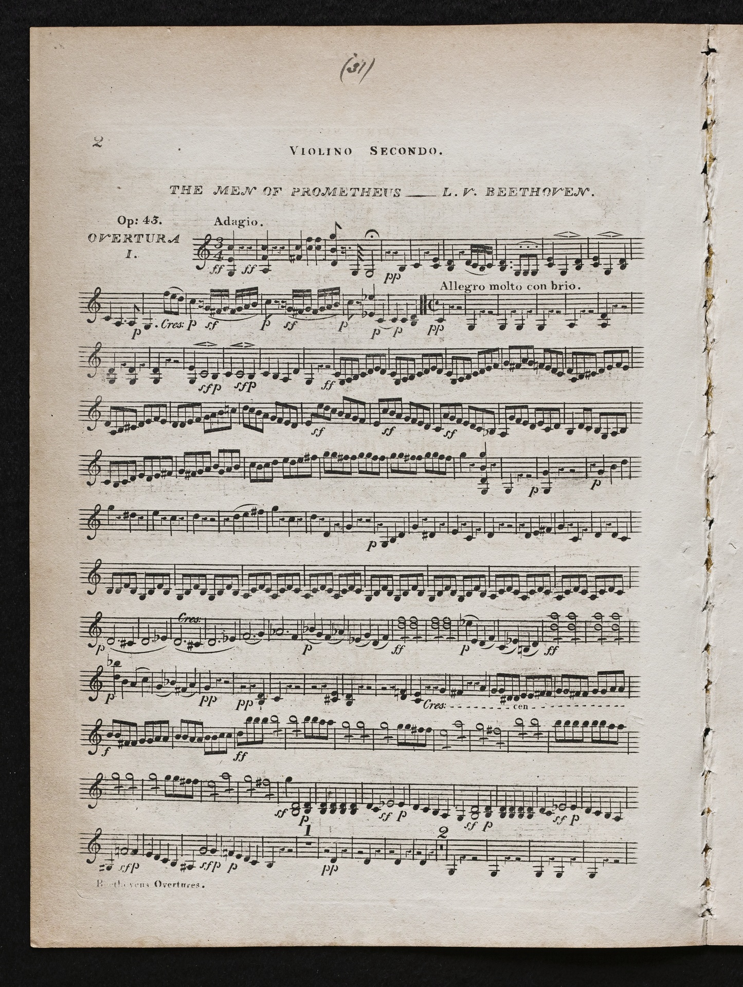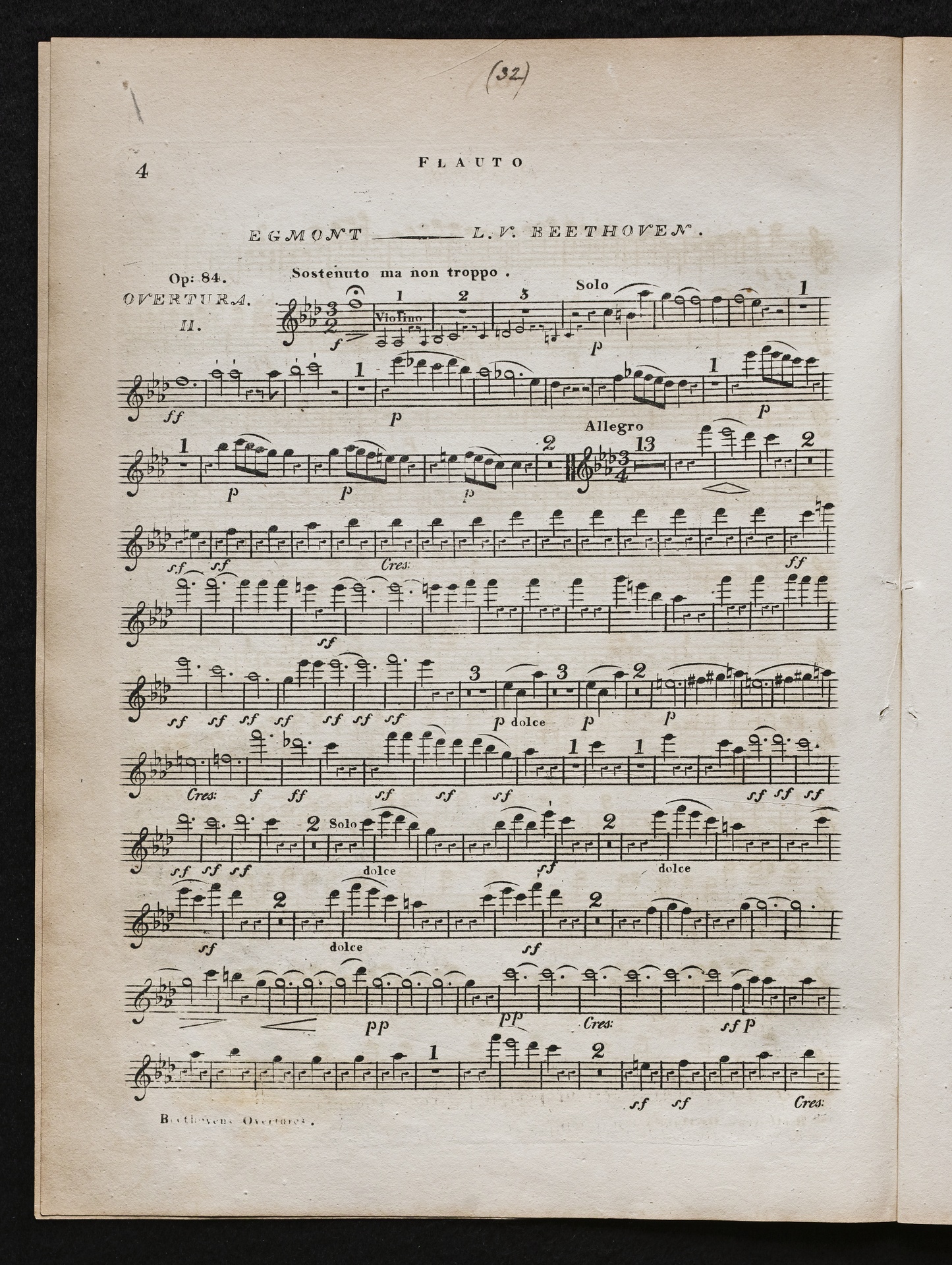 Ludwig van Beethoven, Sammlung von Ouvertüren zu op. 43, op. 84 und op. 72, Bearbeitung für Flöte, 2 Violinen, Viola, Violoncello von Girolamo Masi, Stimmen, Monzani and Hill