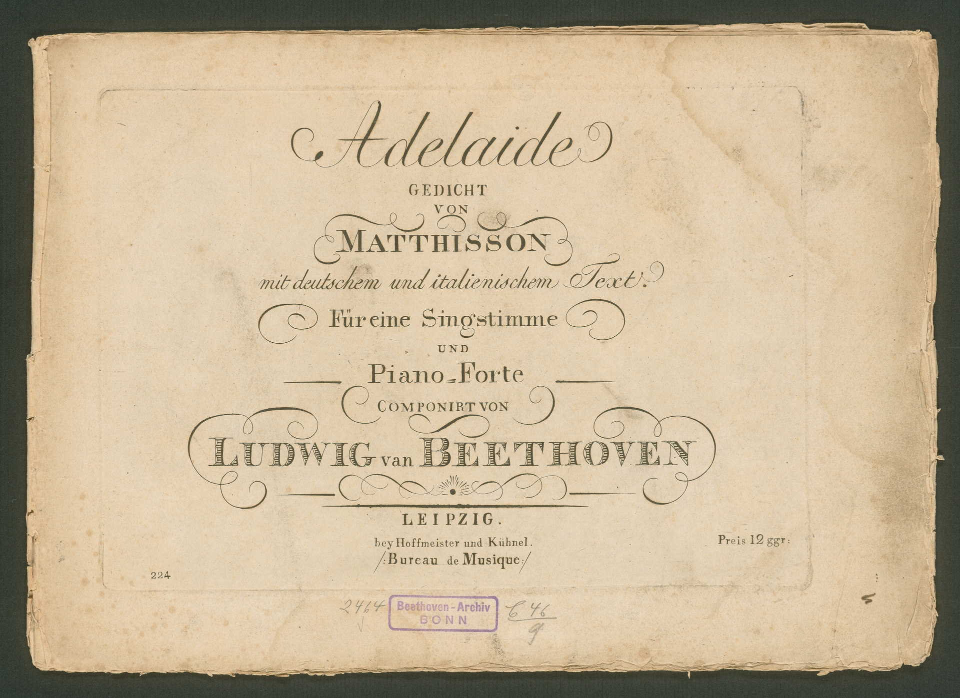 Ludwig van BeethovenFriedrich von Matthisson, "Adelaide", Lied für Singstimme und Klavier op. 46, Hoffmeister und Kühnel, 224