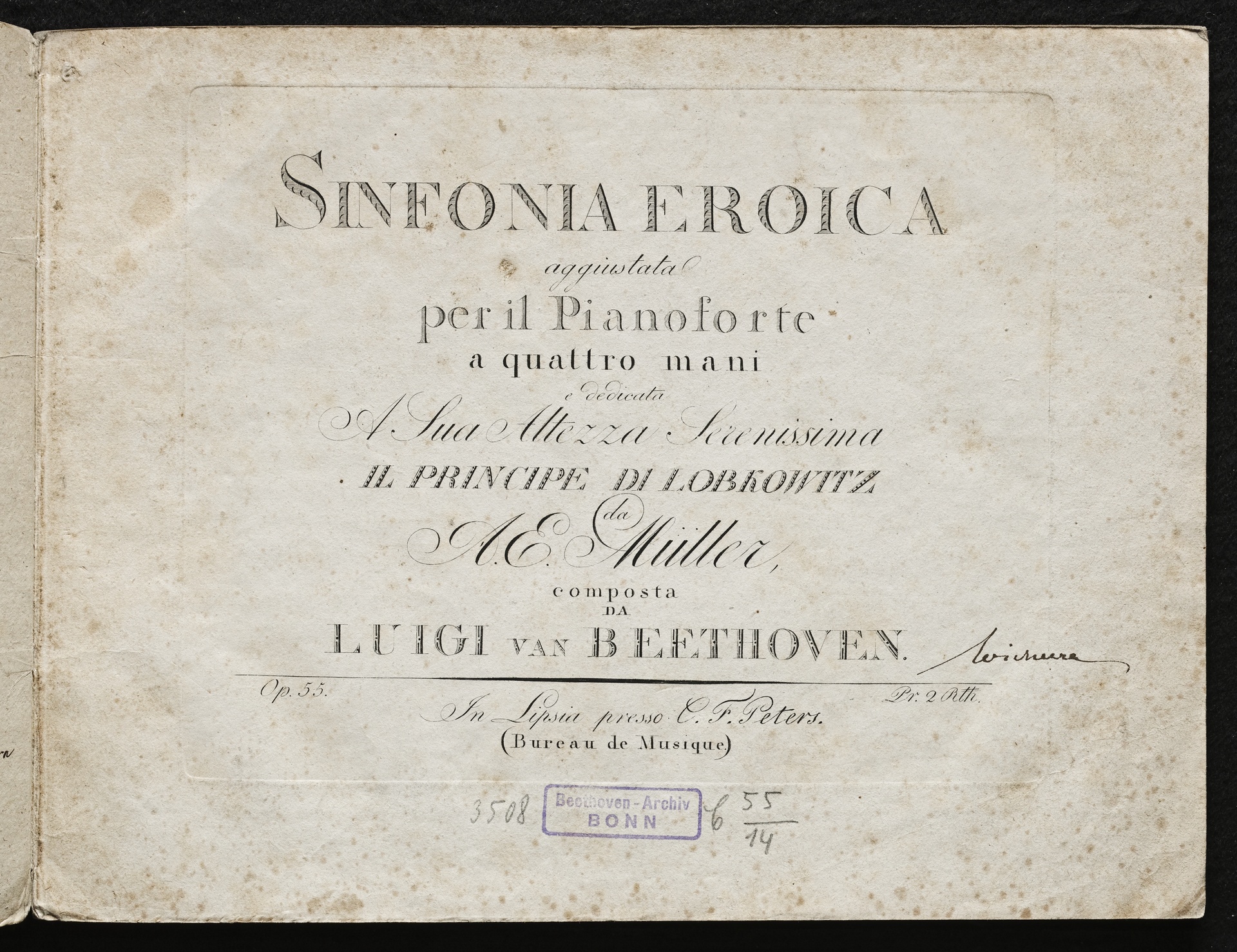 Ludwig van Beethoven, Sinfonie Nr. 3 (Es-Dur) op. 55 (Eroica), Bearbeitung für Klavier zu 4 Händen von August Eberhard Müller, Peters, 520