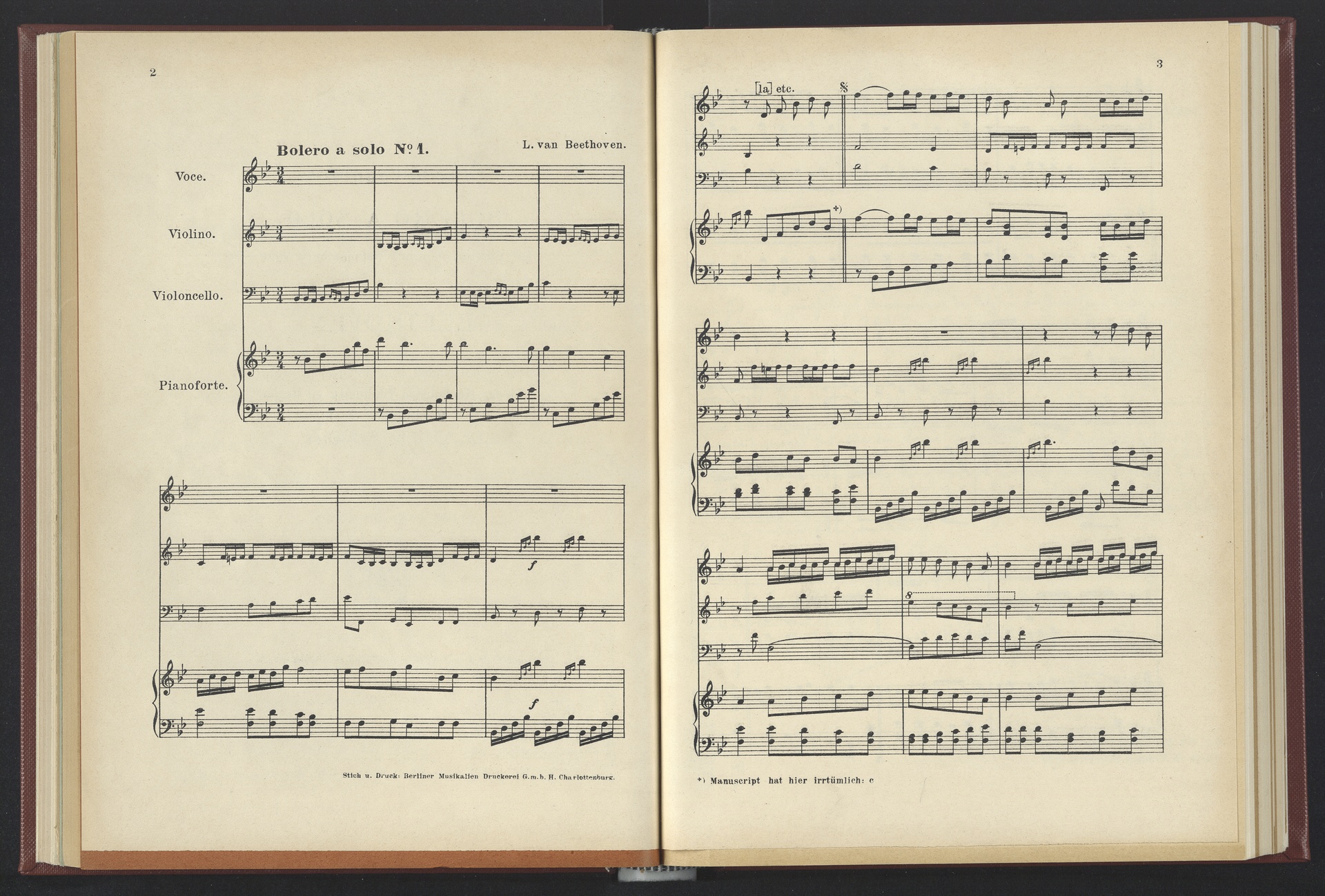 Ludwig van Beethoven, "Bolero à solo" für Singstimme, Klavier, Violine, Violoncello WoO 158, 19, Partitur, Die Musik