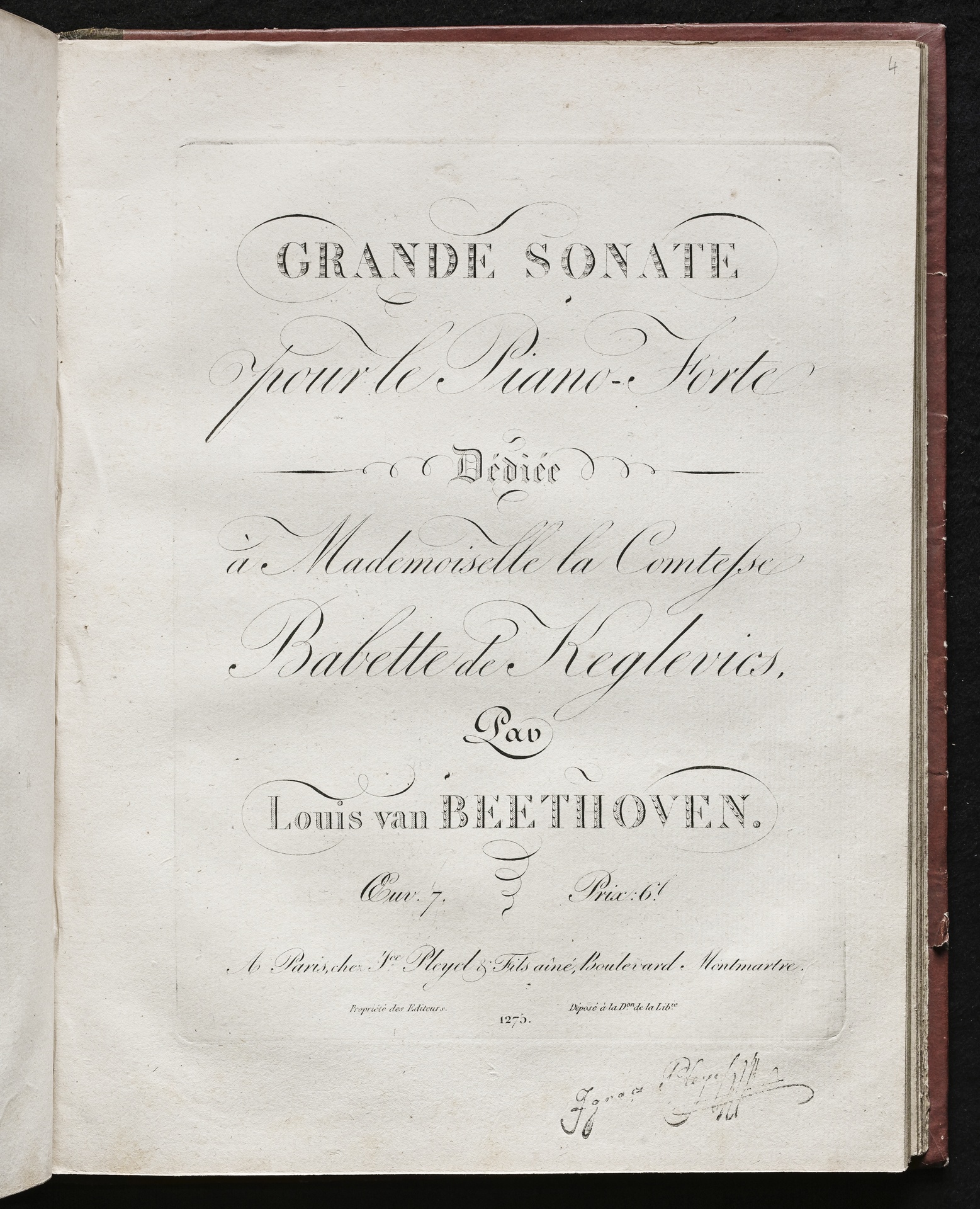 Ludwig van Beethoven, Sonate für Klavier (Es-Dur) op. 7, Pleyel, 1275
