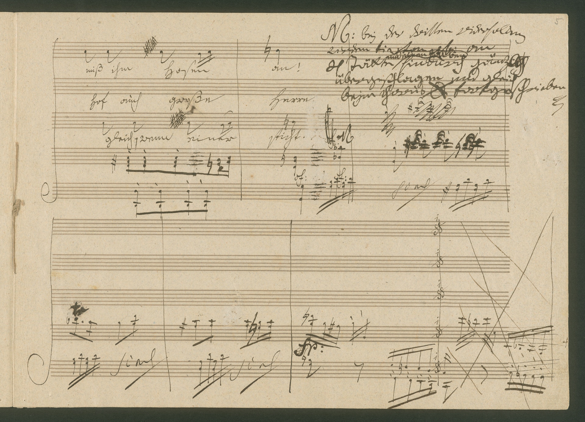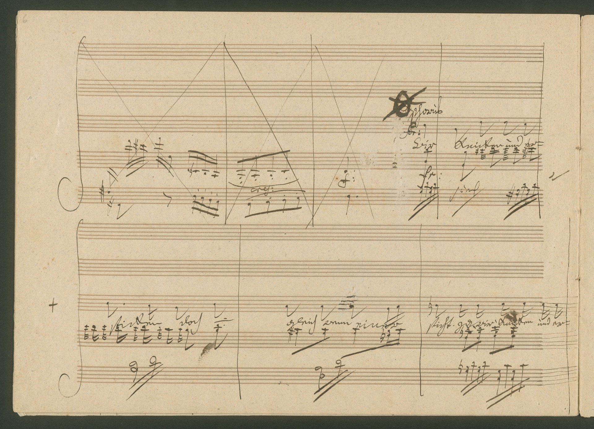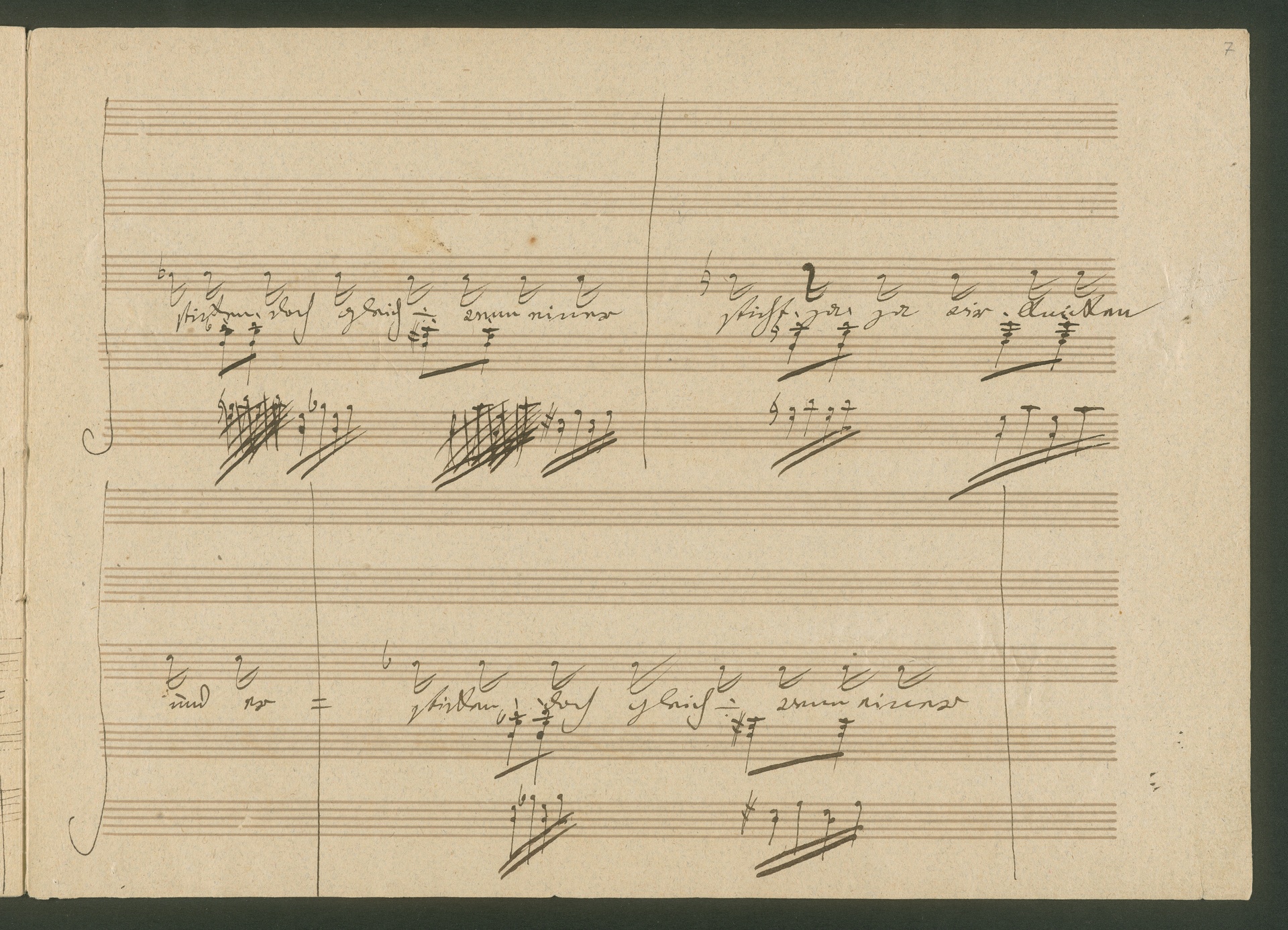 A happy crowd of students are sitting in a tavern, drinking heavily and singing bawdy songs. Faust and Mephisto join them. Mephisto adds to the merriment with a song about the takeover of a royal court by a flea. This is the scene "Auerbach's cellar" in Goethe's Faust Part I. The so-called Flohlied has been set to music by many composers, including great names such as Franz Schubert, Richard Wagner, Hector Berlioz and Modest Mussorgsky. However, what is thought to be the first setting is by Ludwig van Beethoven. Goethe's Faust first appeared in 1808. The Flohlied had, however, already appeared in the same form in the "Faust Fragment" of 1790. The young Beethoven was probably familiar with the Faust Fragment, as he had already made a very extensive musical draft for the first verse of the song in the 1790s. The final version of the song from 1809 (Beethoven wrote this date diagonally across the title page) mainly follows the first draft. Beethoven composed the song as incidental music, so that it could be sung on the stage as part of the tragedy. The accompaniment is simple. The vocal part is not demanding - there are no difficult leaps or complicated rhythms, it is rather declamatory. Goethe's text is divided up into three verses and Beethoven also sets it as a strophic song. He notates the text of each verse in a separate stave, without repeating the musical text. He only adds changes to the rhythm at the points where the declamation diverges. In Goethe's scene everyone joins in with Mephisto's song at the end and they all repeat the two last verses. Beethoven also includes this "chorus" (but does not compose it for several voices). The manner of writing, and also the directions to the copyist which Beethoven wrote on the title page and before the beginning of the chorus, suggest that the autograph score was a copy made by the composer rather than a working autograph score of the composition. (J.R.)