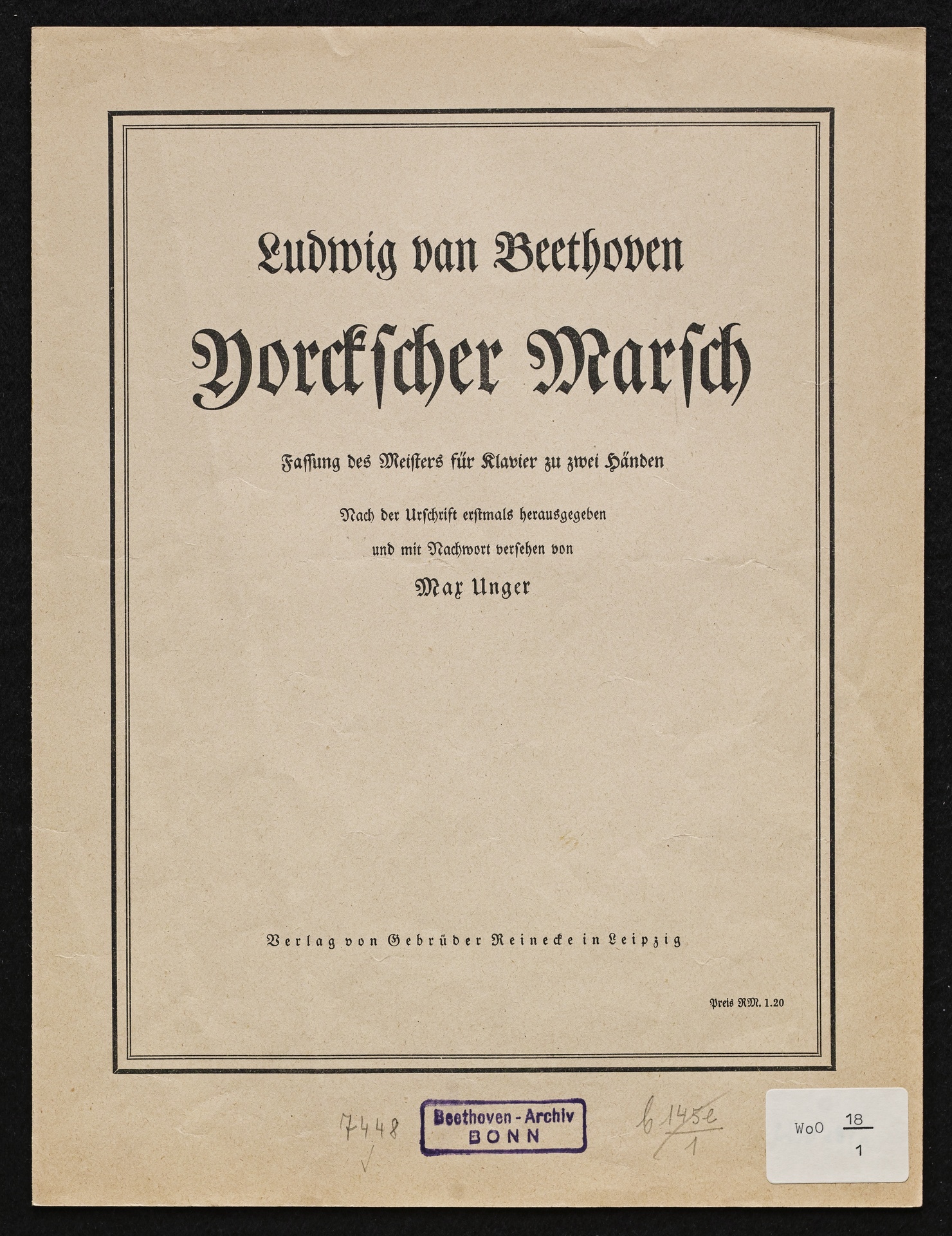 Ludwig van Beethoven, Marsch für Militärmusik (F-Dur) WoO 18, für Klavier, Reinecke