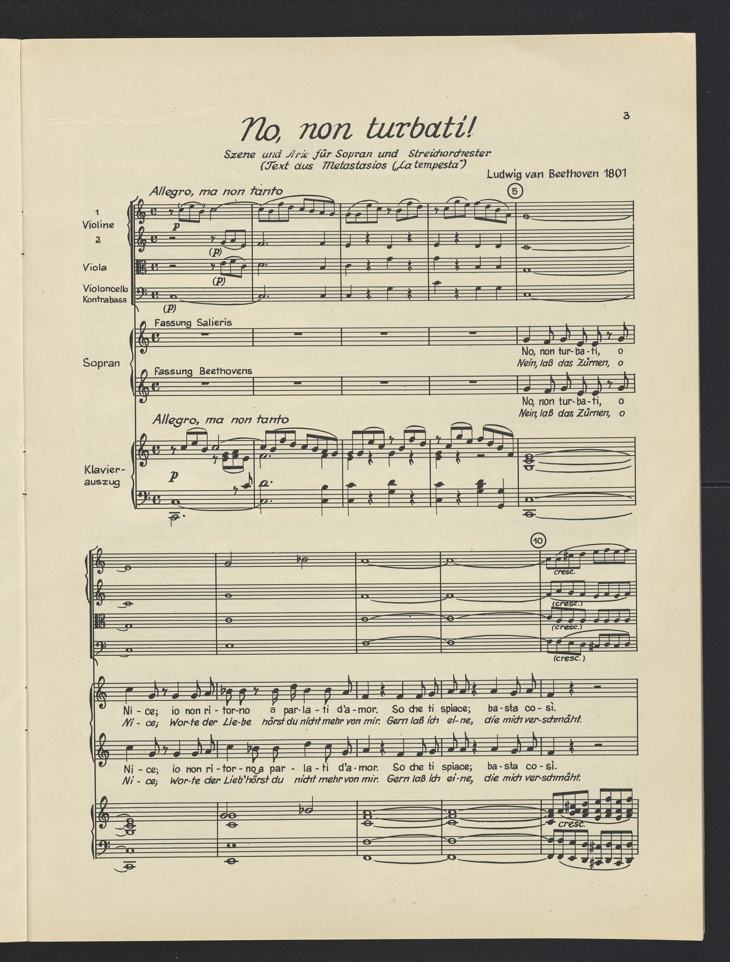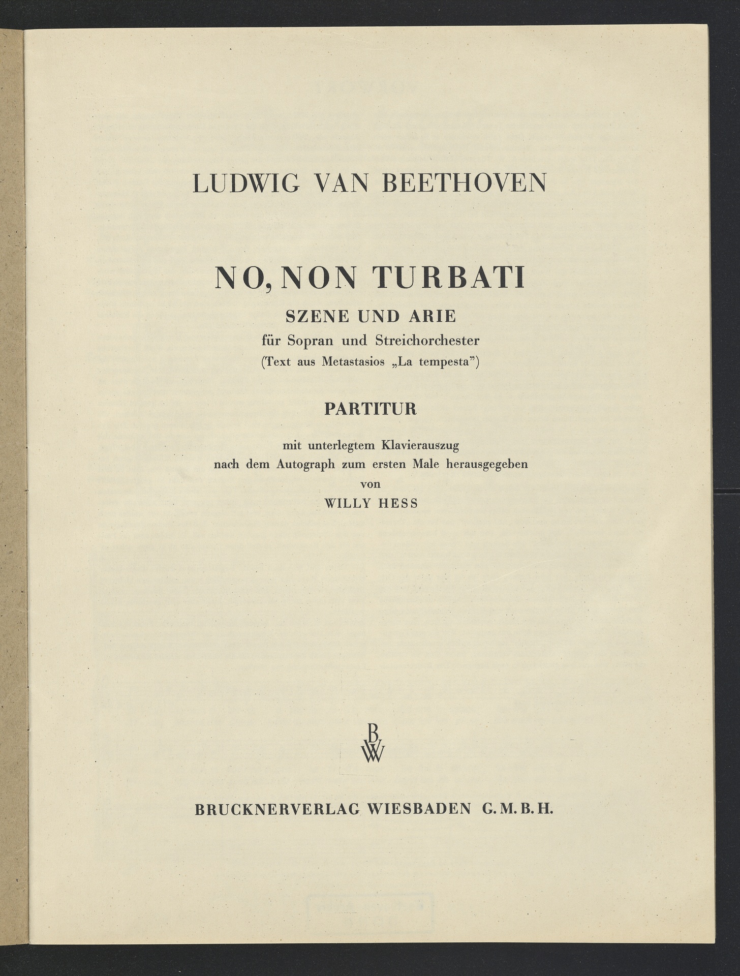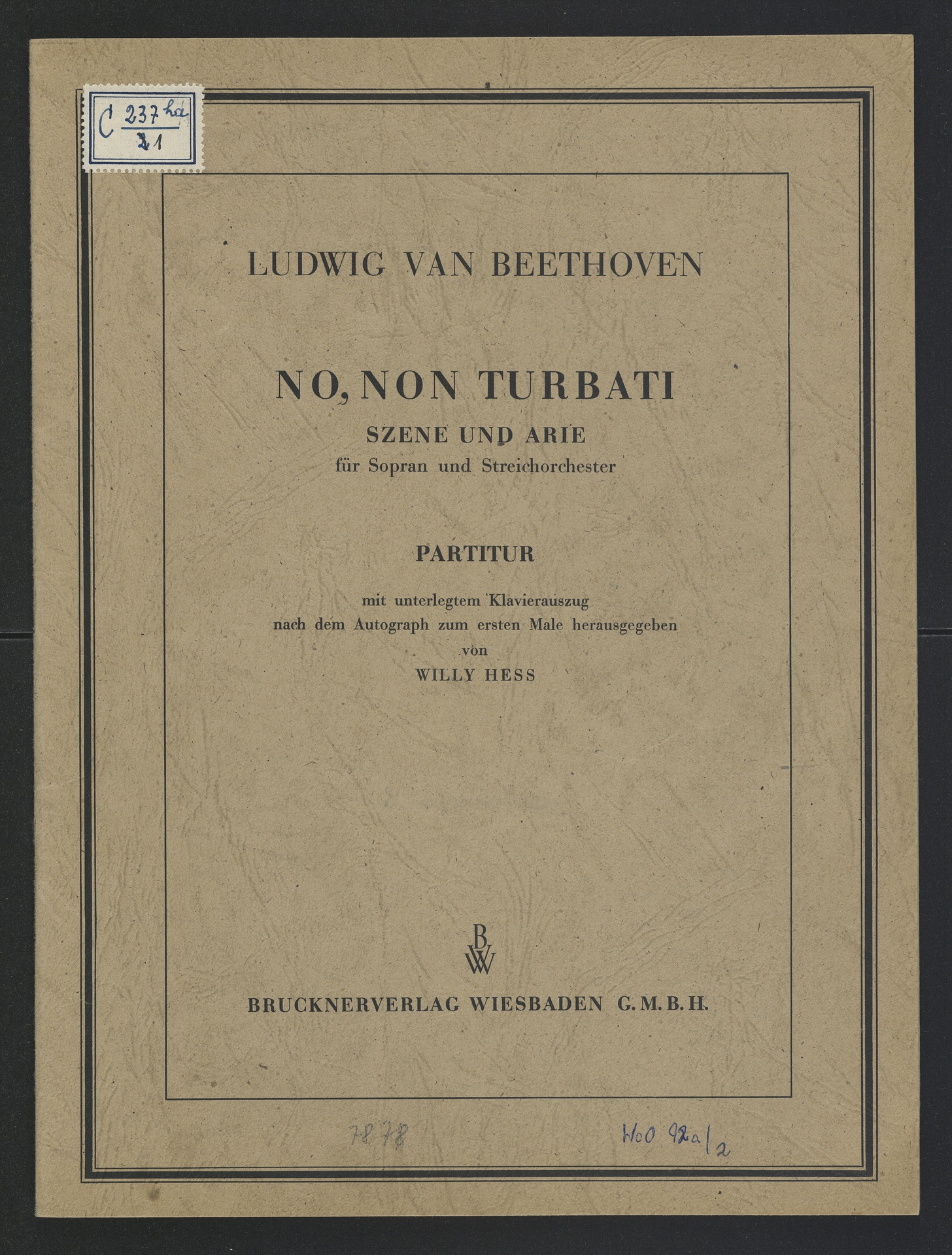 Ludwig van BeethovenPietro Metastasio, "No, non turbarti", Szene und Arie für Sopran und Streichorchester WoO 92a, Partitur mit unterlegtem Klavierauszug, Brucknerverlag