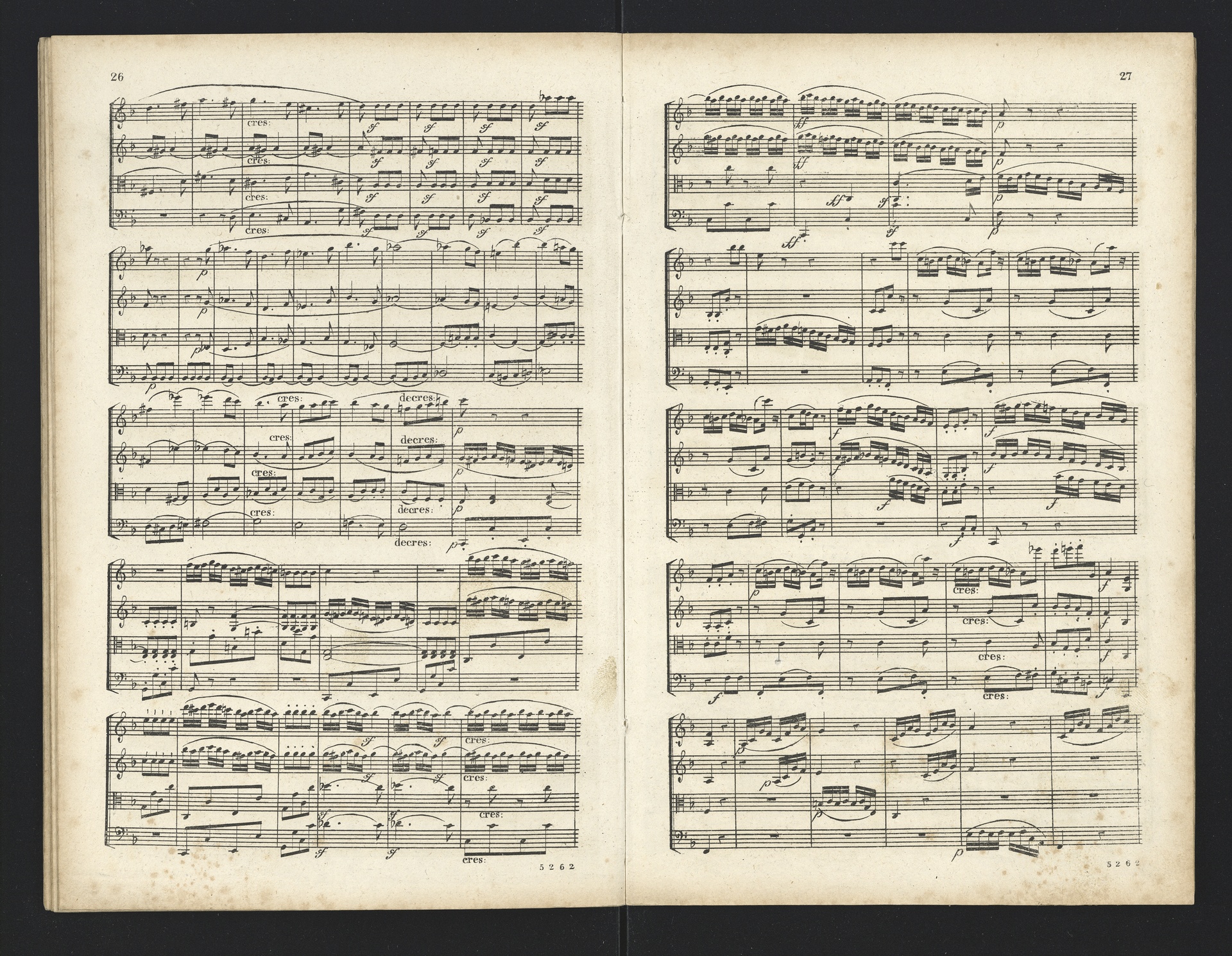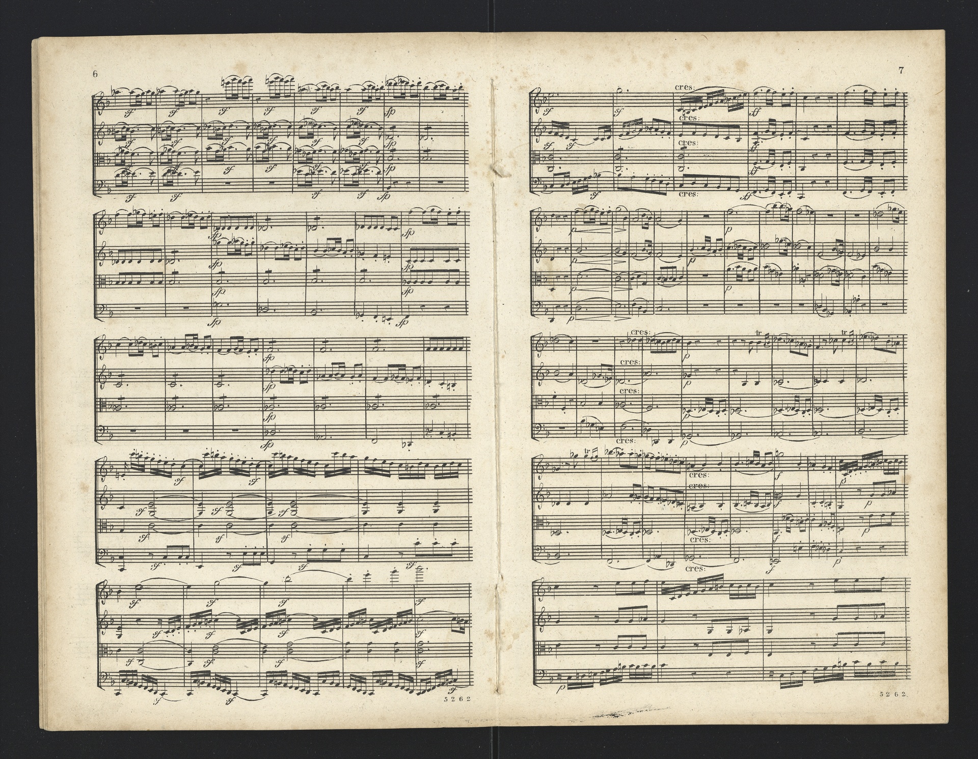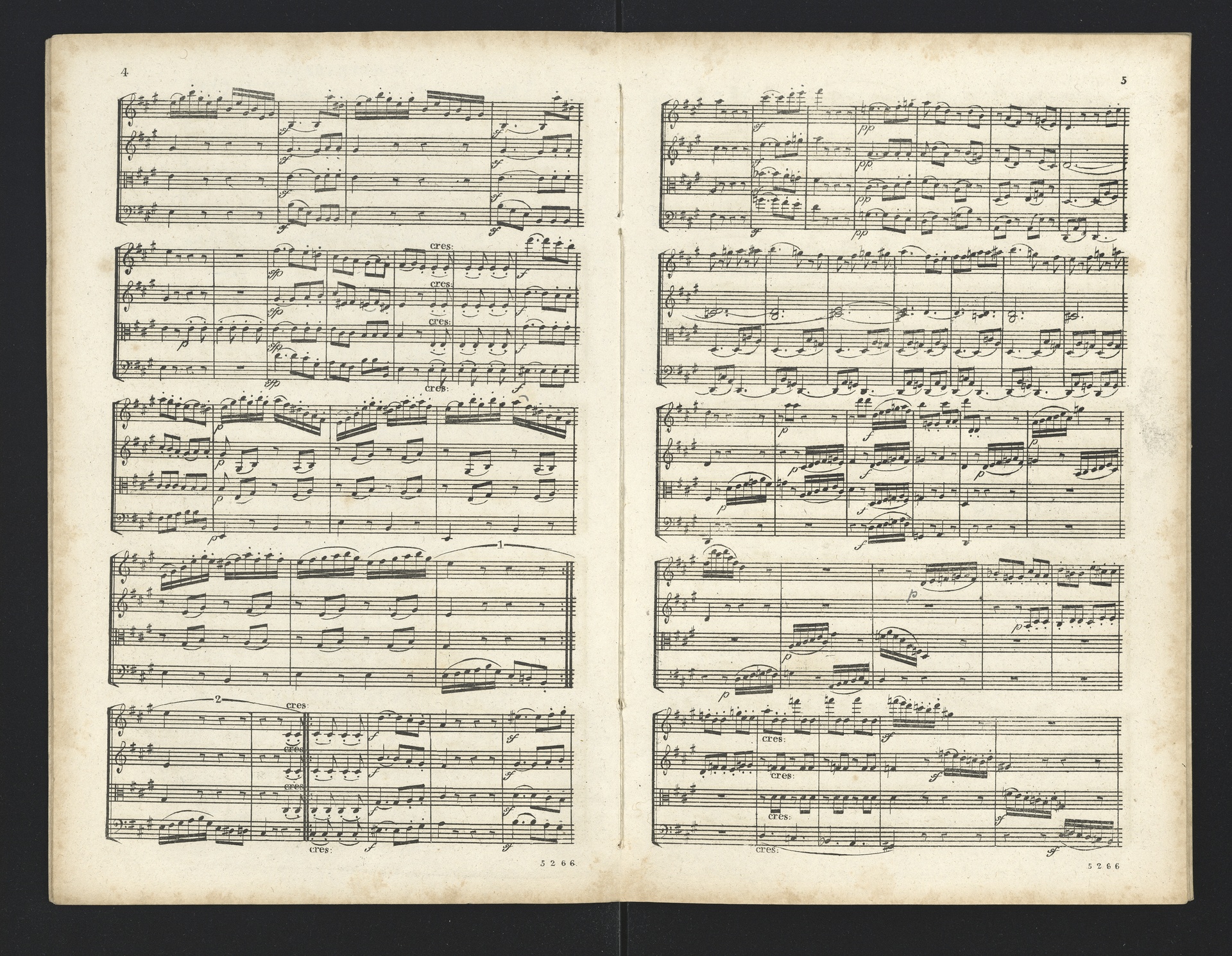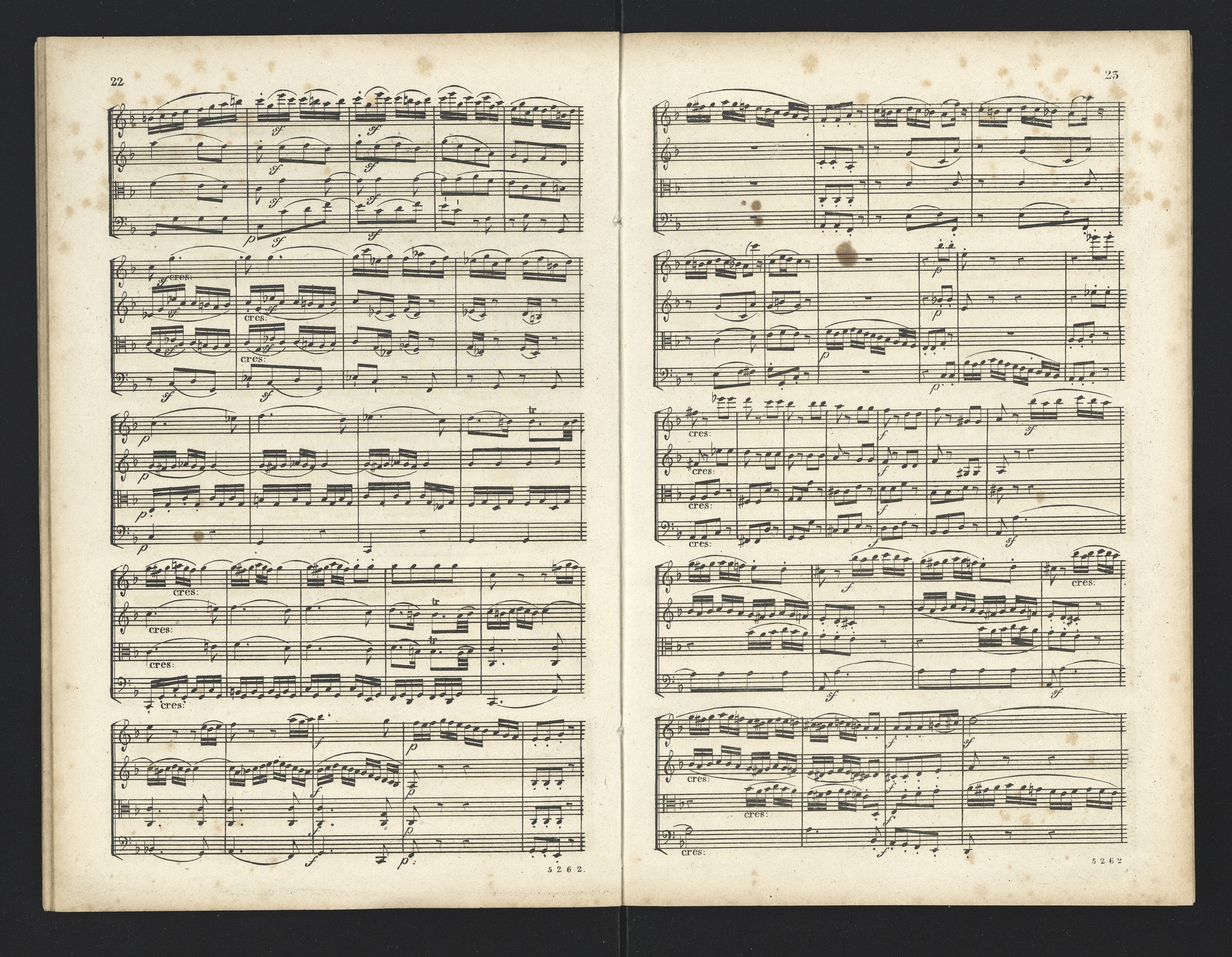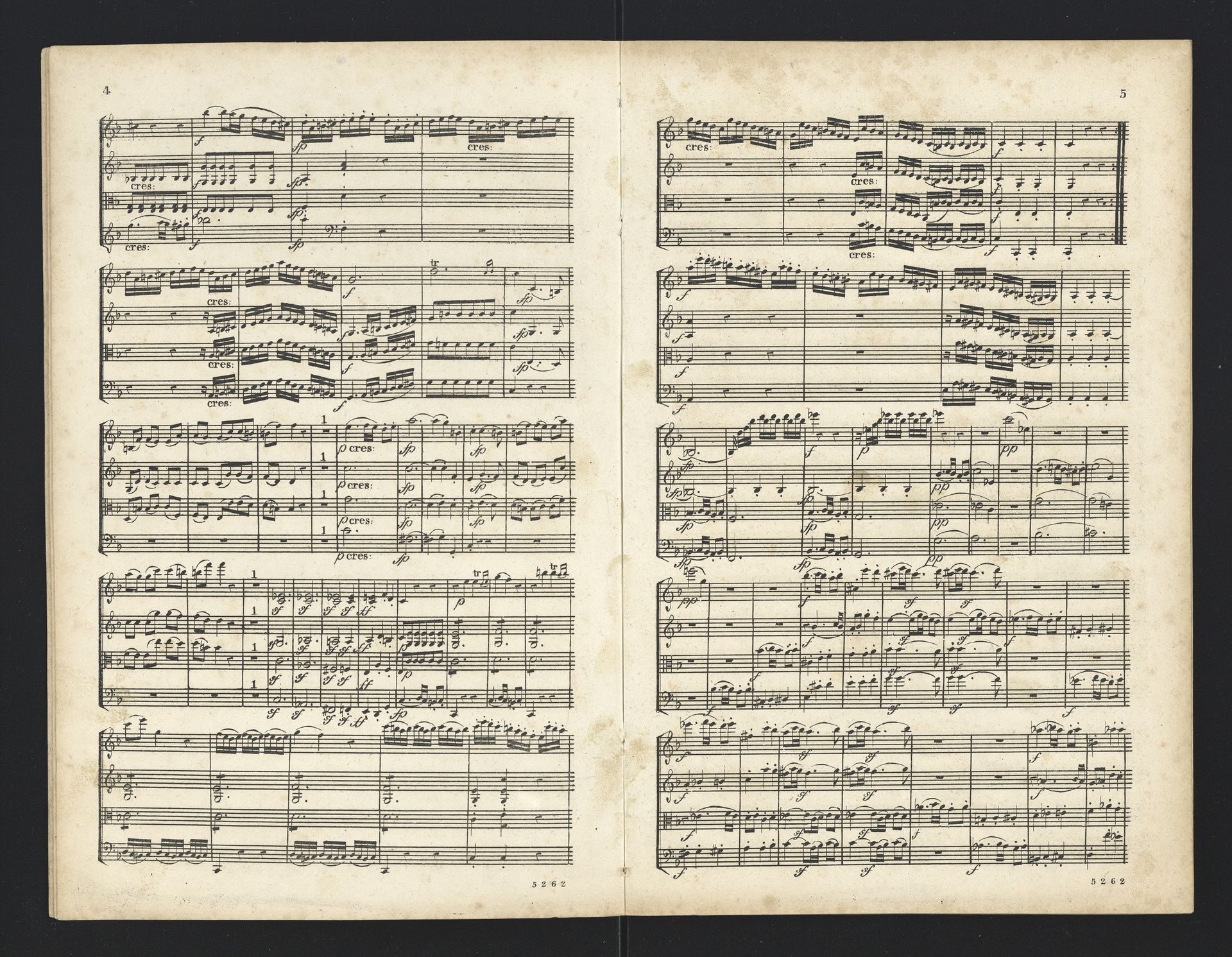 Ludwig van Beethoven, Quartette für 2 Violinen, Viola, Violoncello (F-Dur, G-Dur, D-Dur, c-Moll, A-Dur) op. 18, 1-5, Partitur, André, 5262-5266