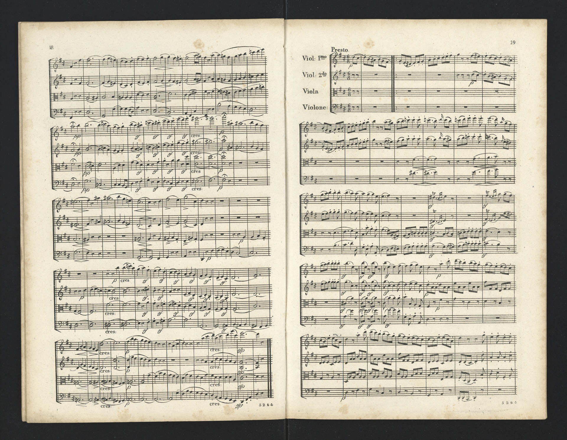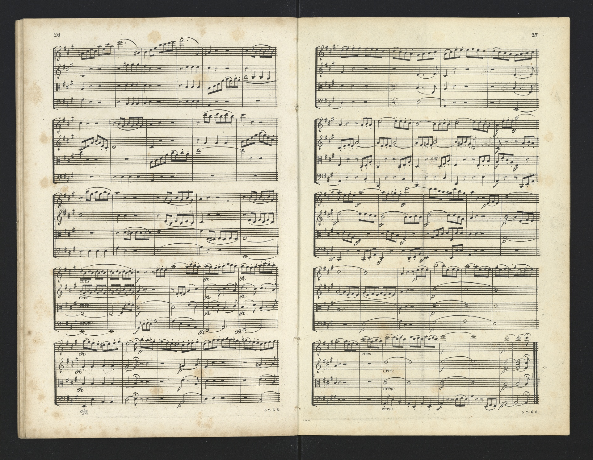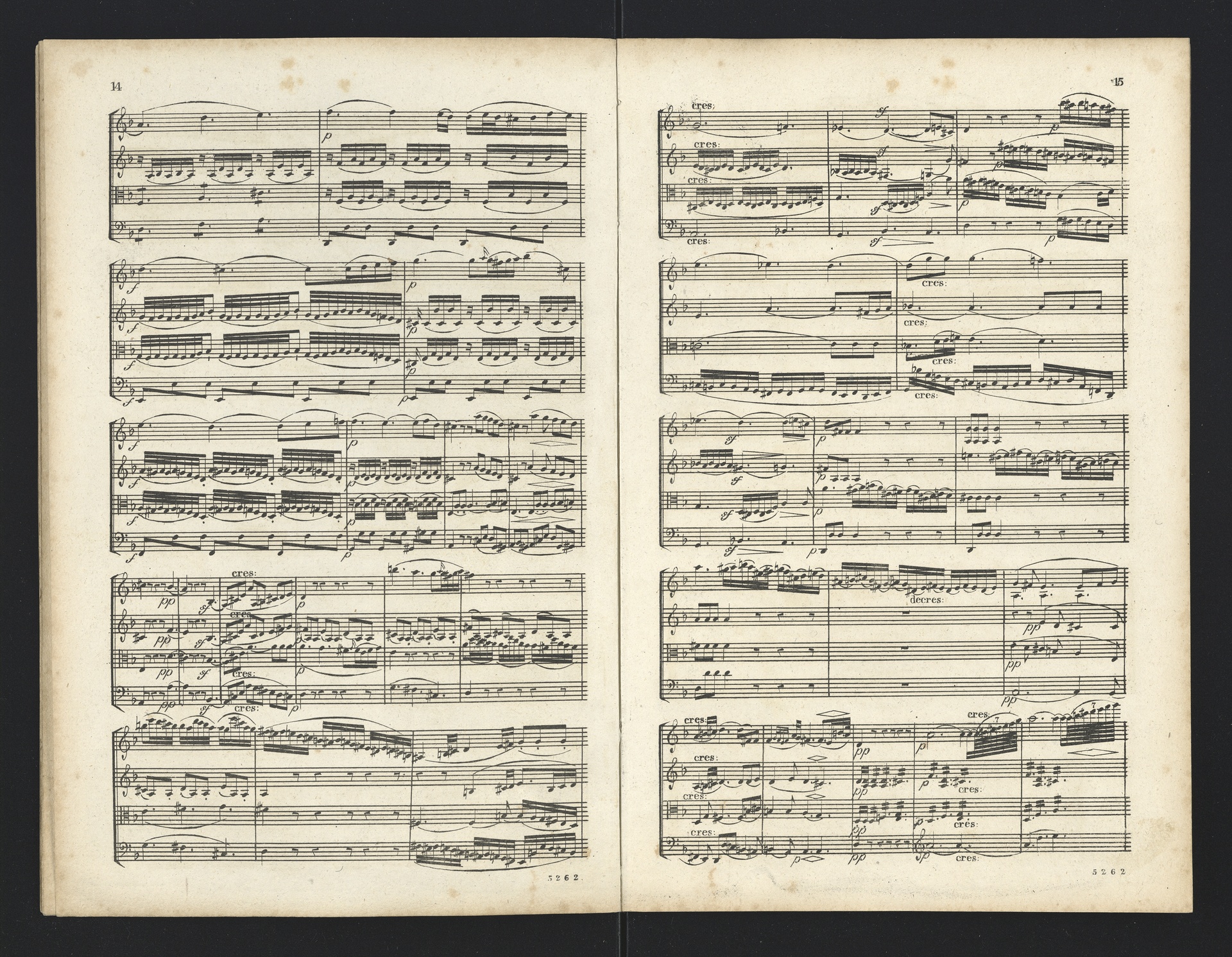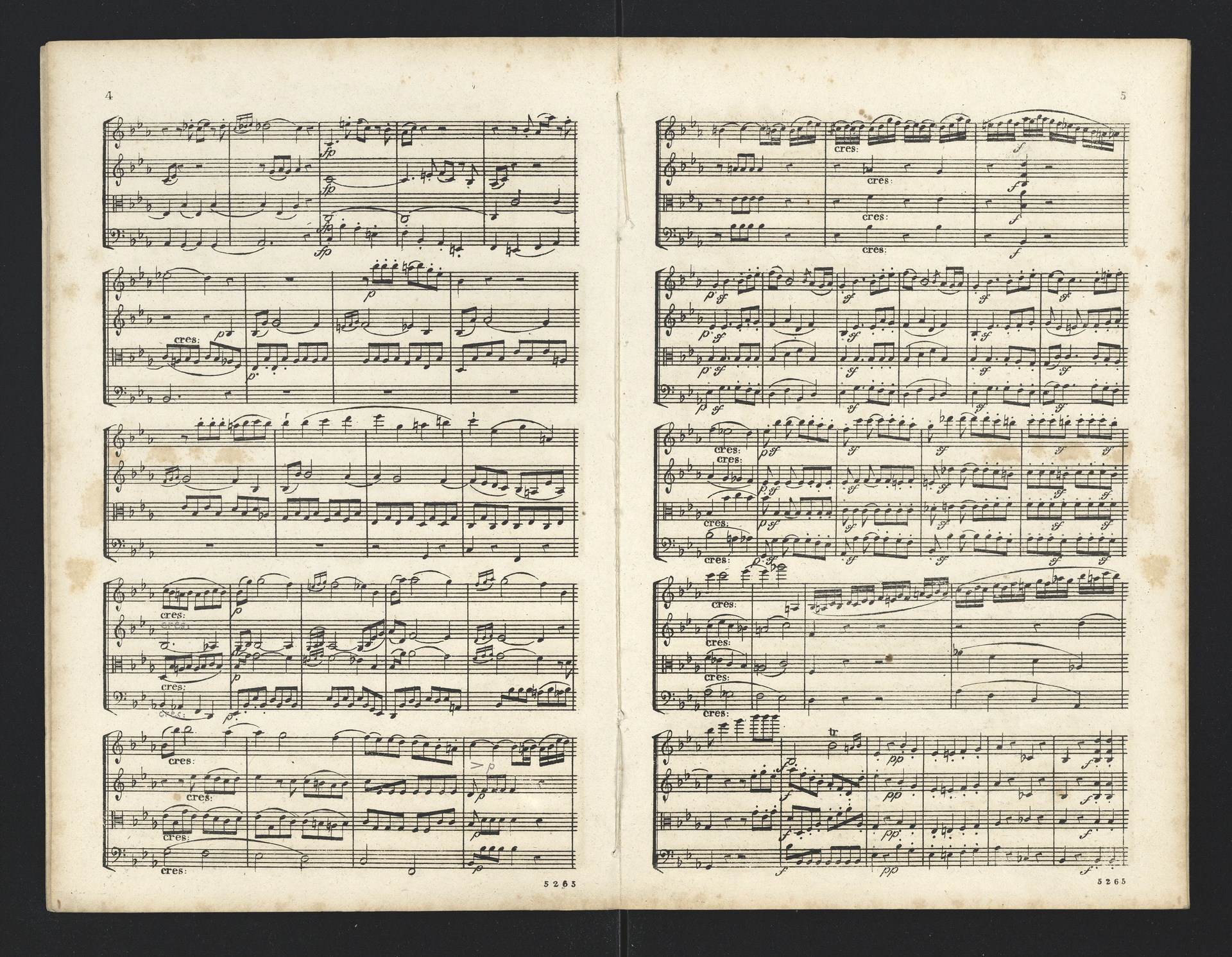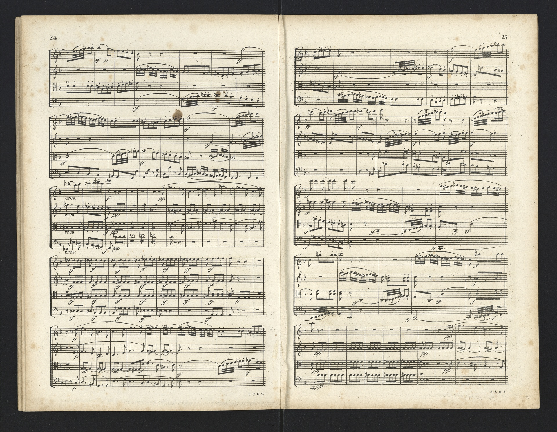 Ludwig van Beethoven, Quartette für 2 Violinen, Viola, Violoncello (F-Dur, G-Dur, D-Dur, c-Moll, A-Dur) op. 18, 1-5, Partitur, André, 5262-5266