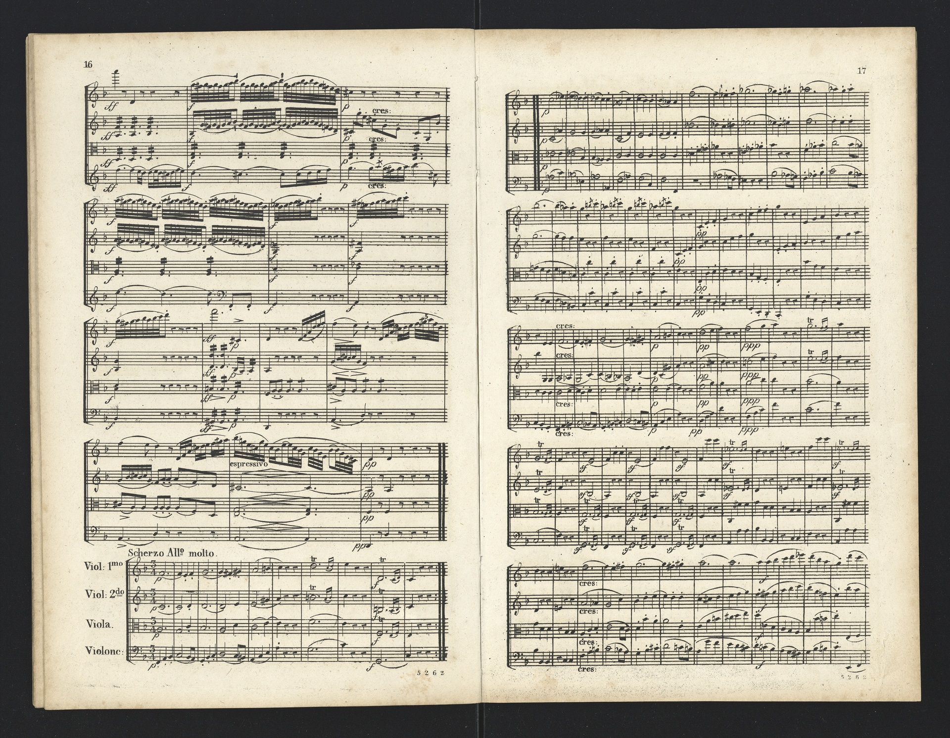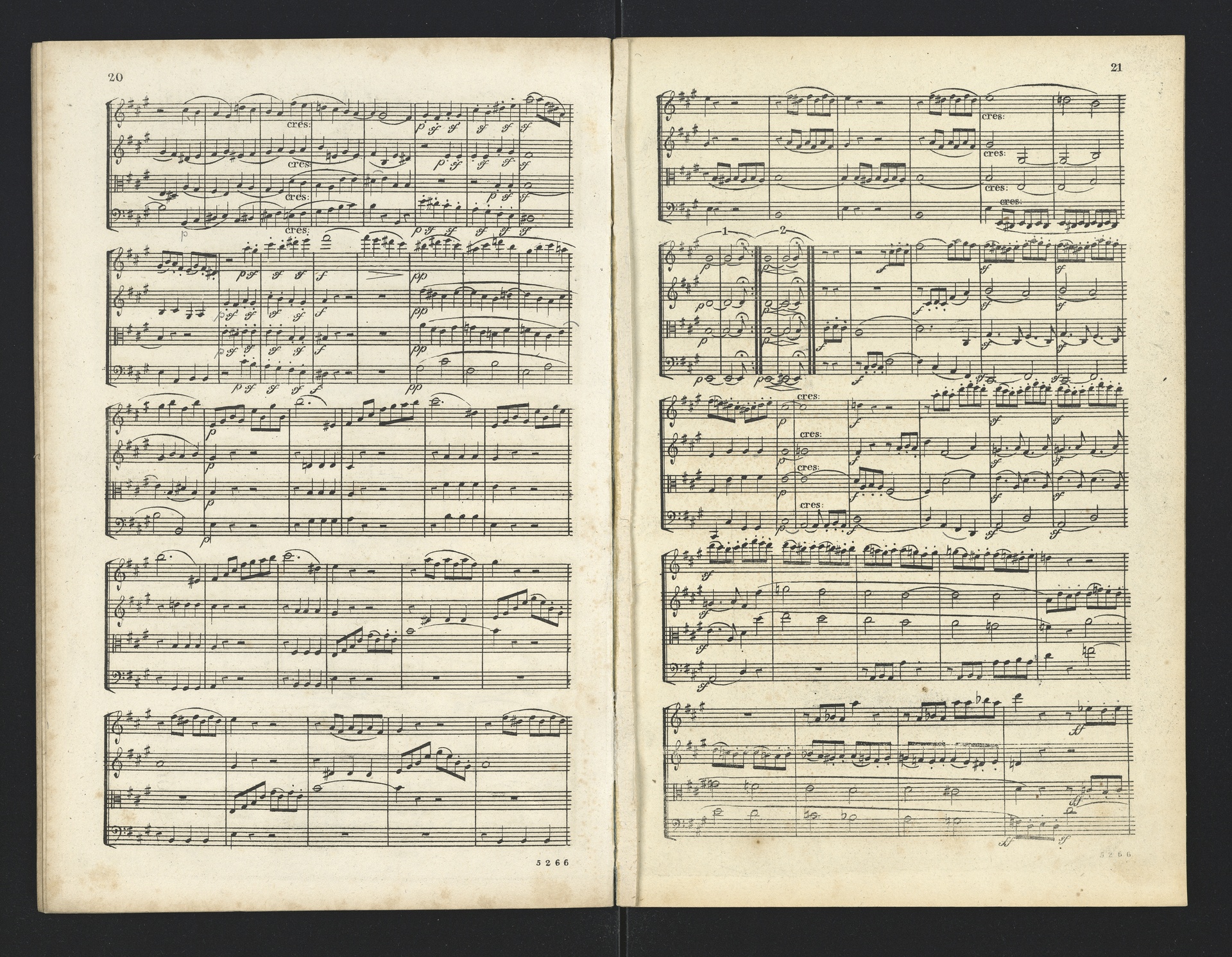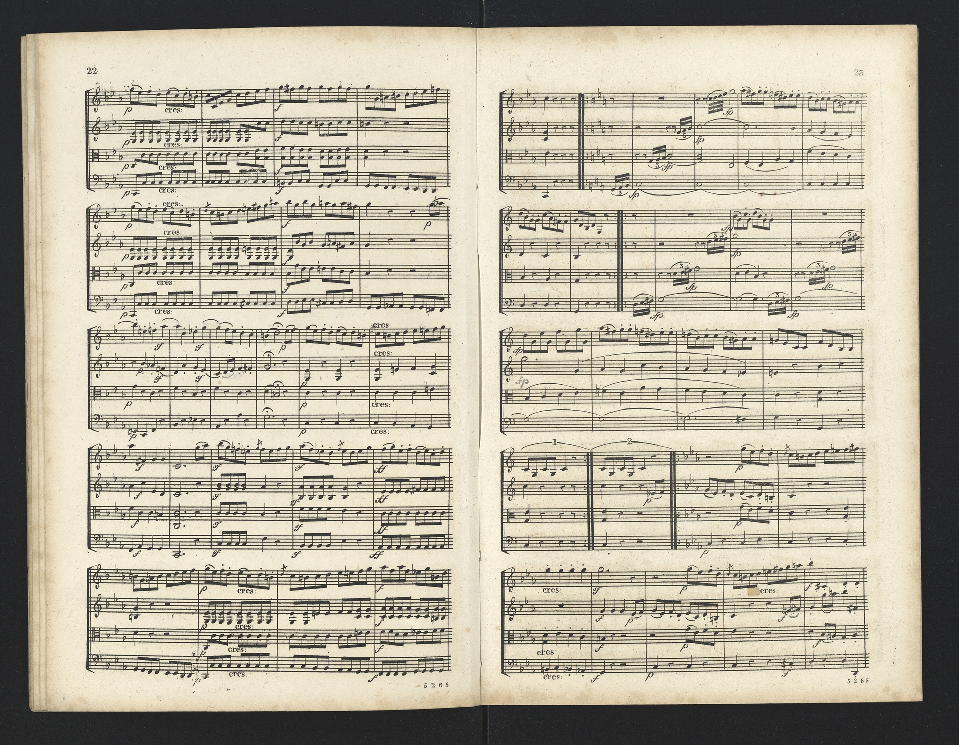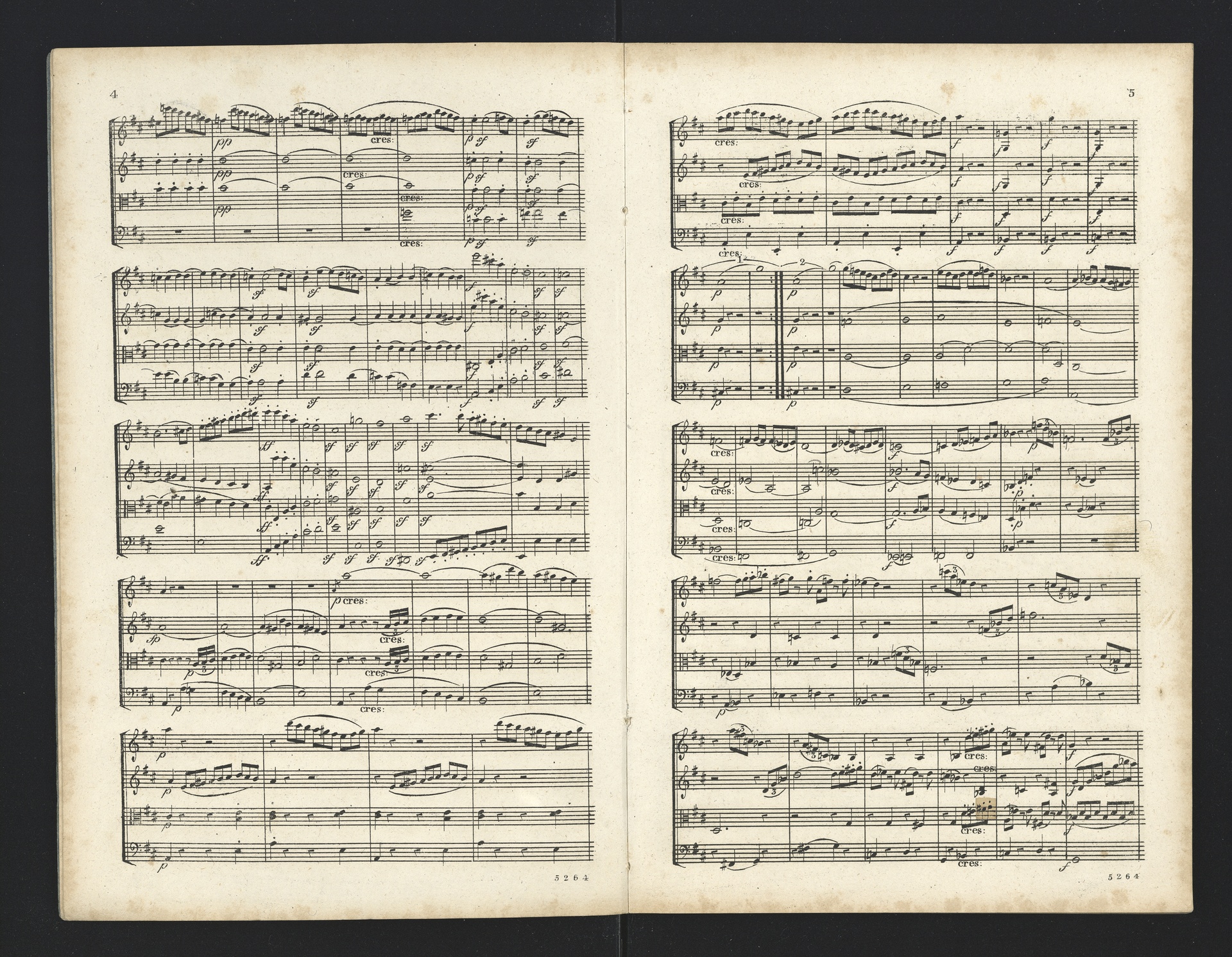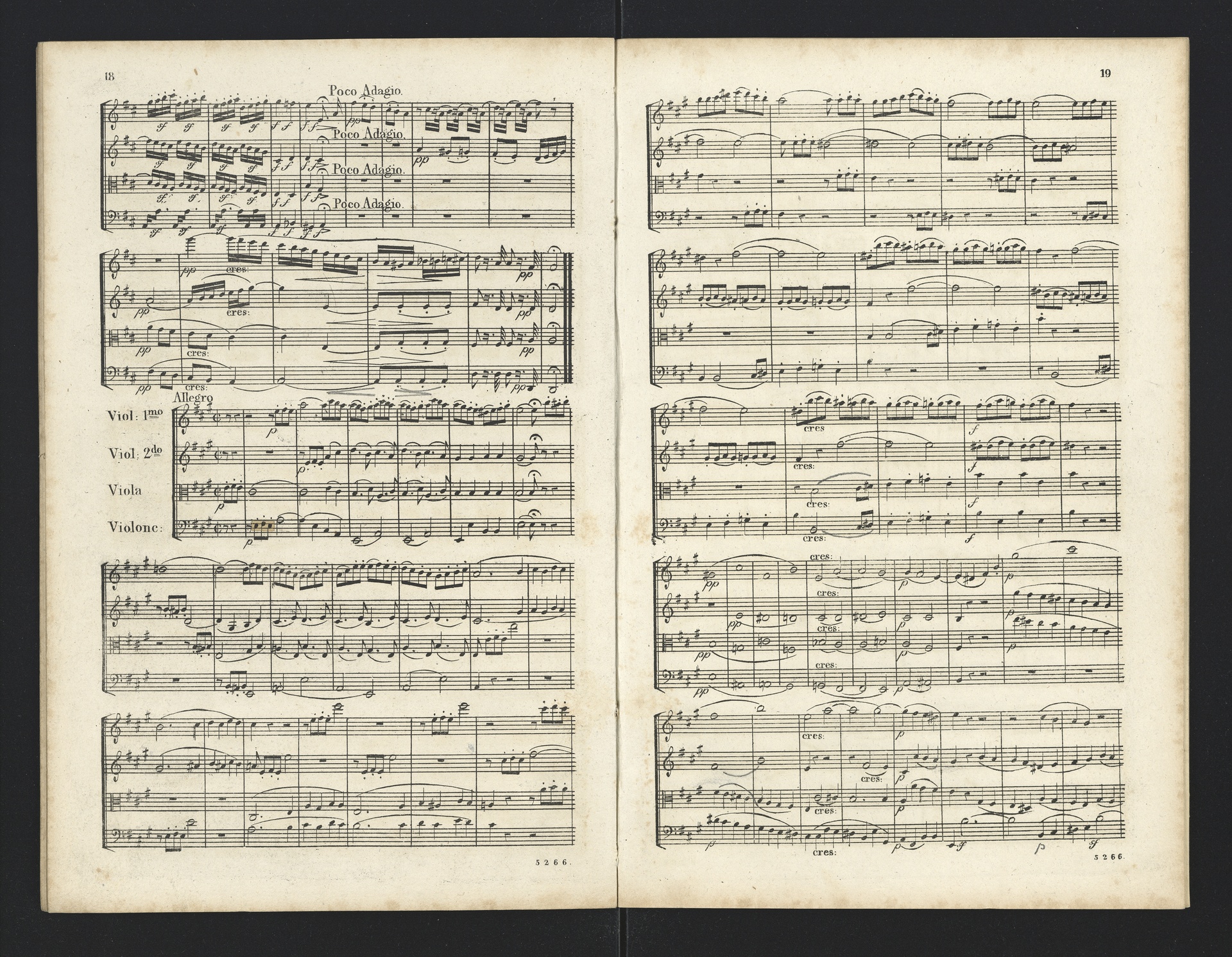 Ludwig van Beethoven, Quartette für 2 Violinen, Viola, Violoncello (F-Dur, G-Dur, D-Dur, c-Moll, A-Dur) op. 18, 1-5, Partitur, André, 5262-5266