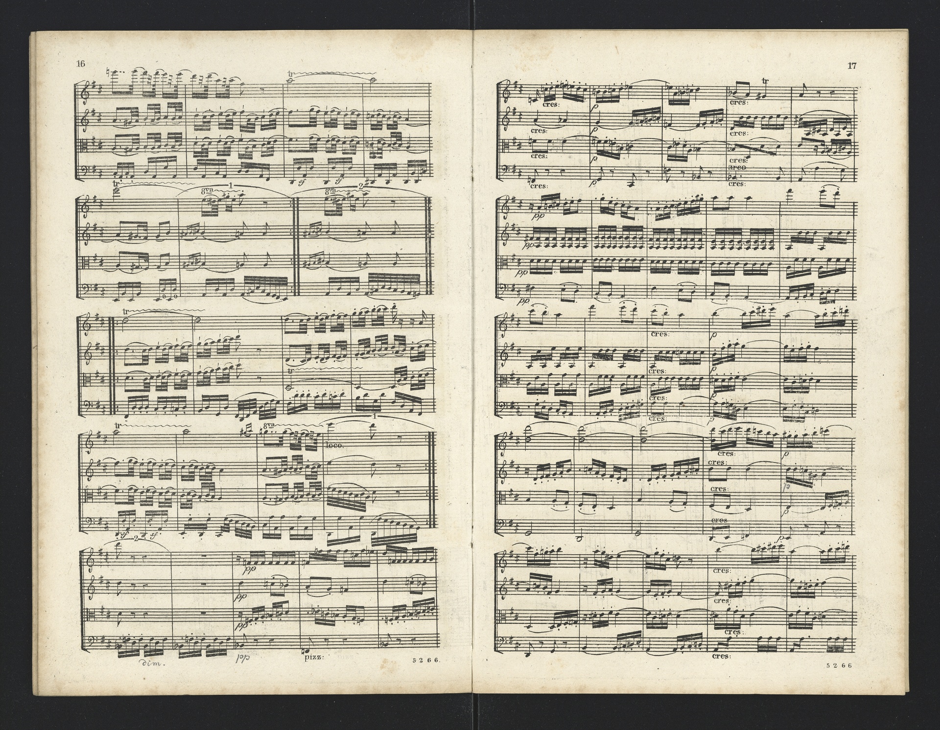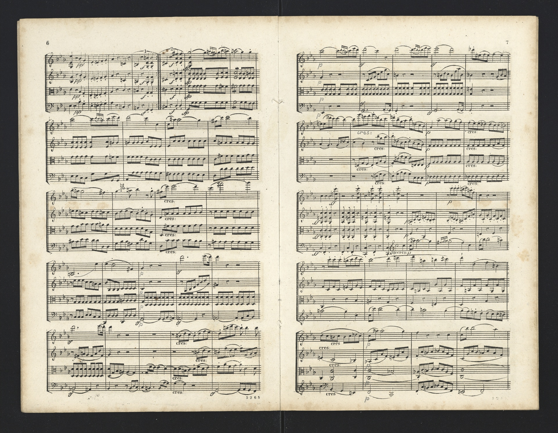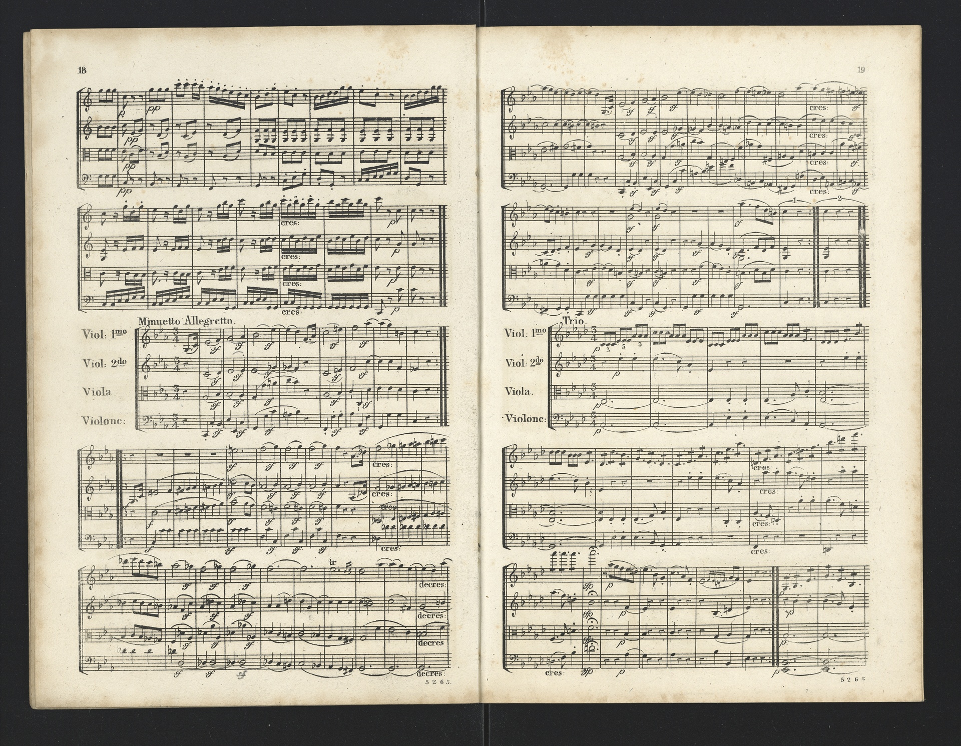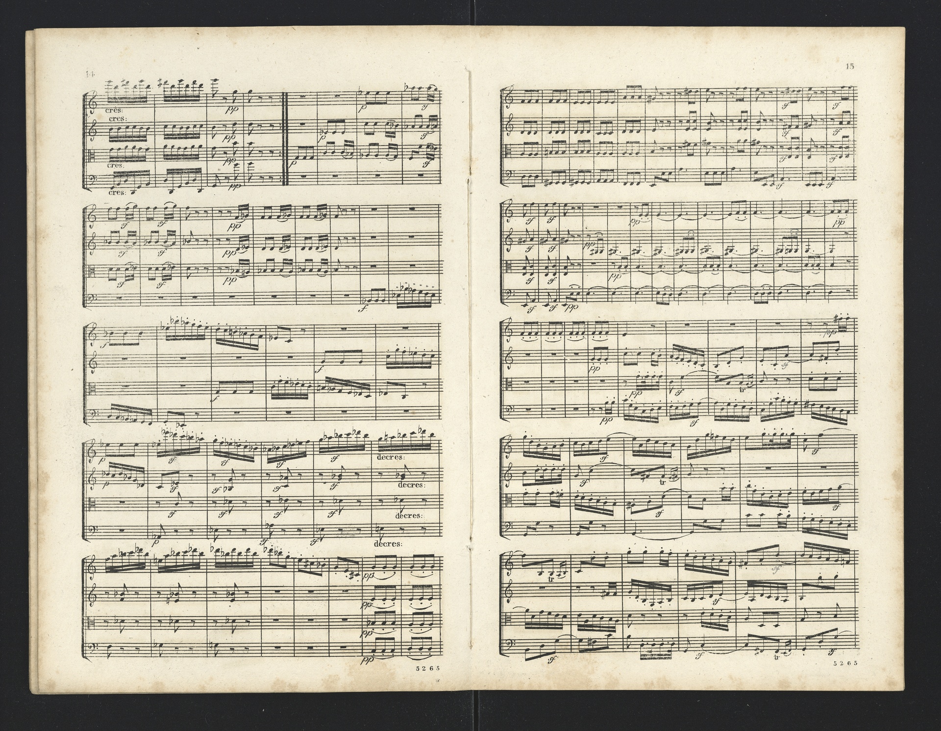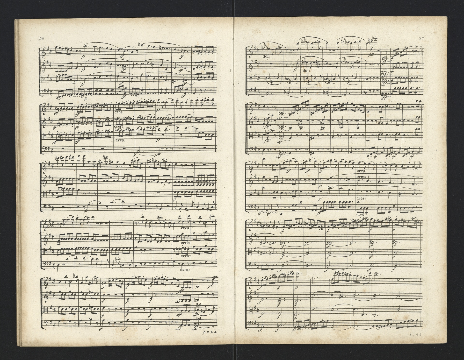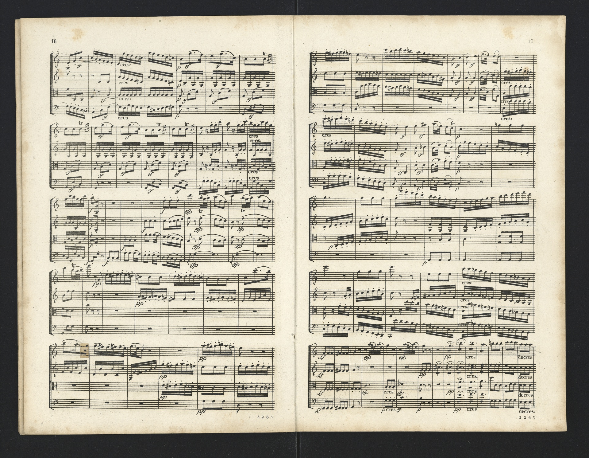 Ludwig van Beethoven, Quartette für 2 Violinen, Viola, Violoncello (F-Dur, G-Dur, D-Dur, c-Moll, A-Dur) op. 18, 1-5, Partitur, André, 5262-5266