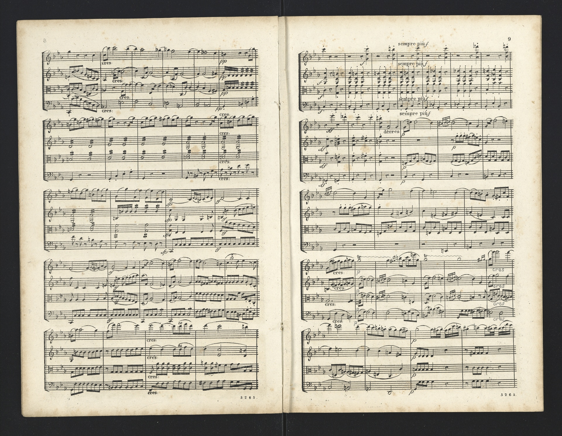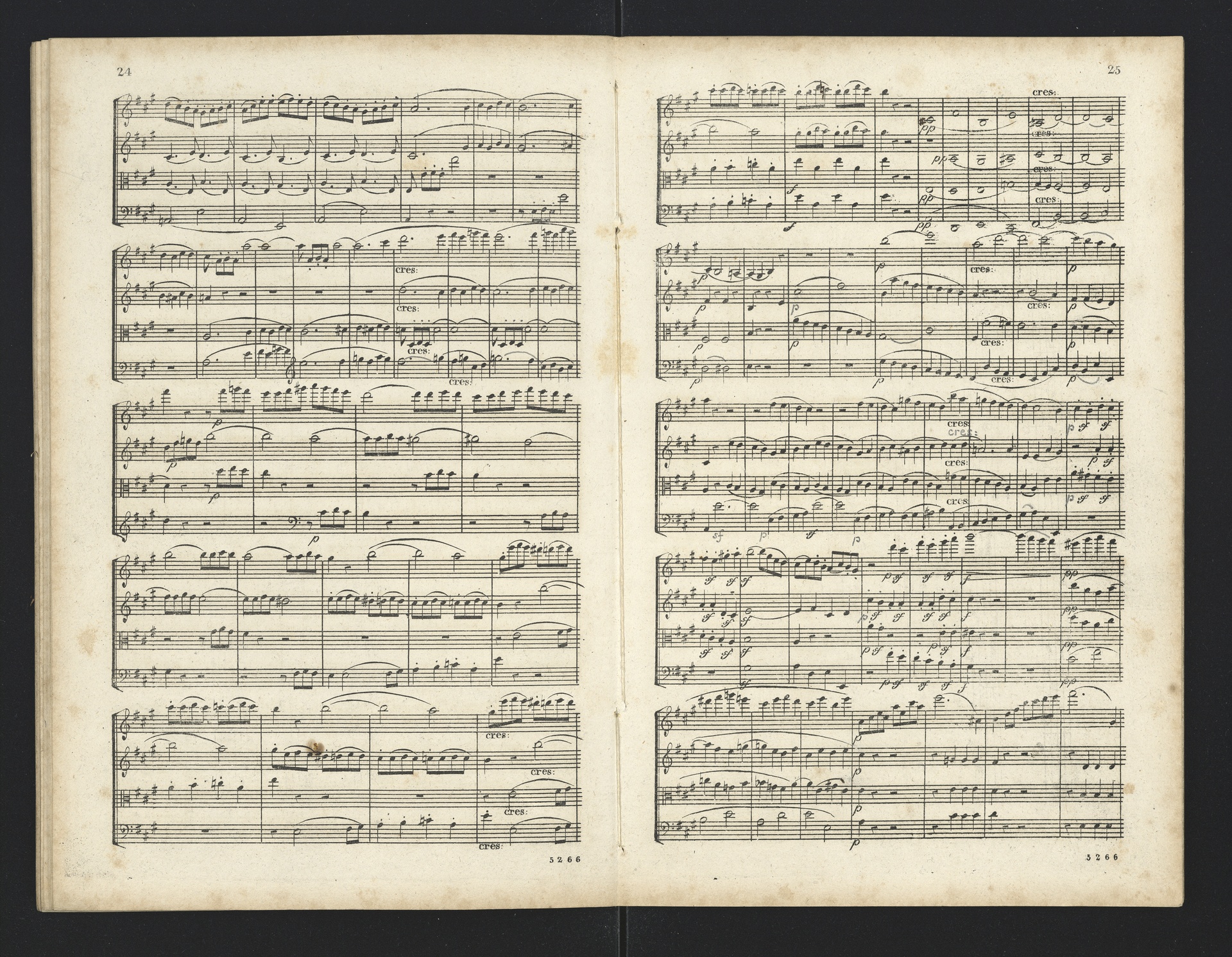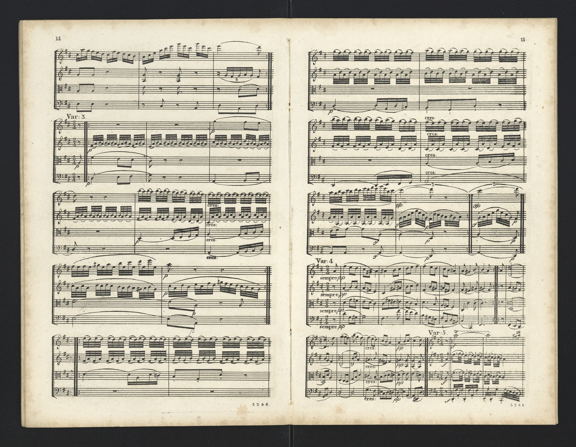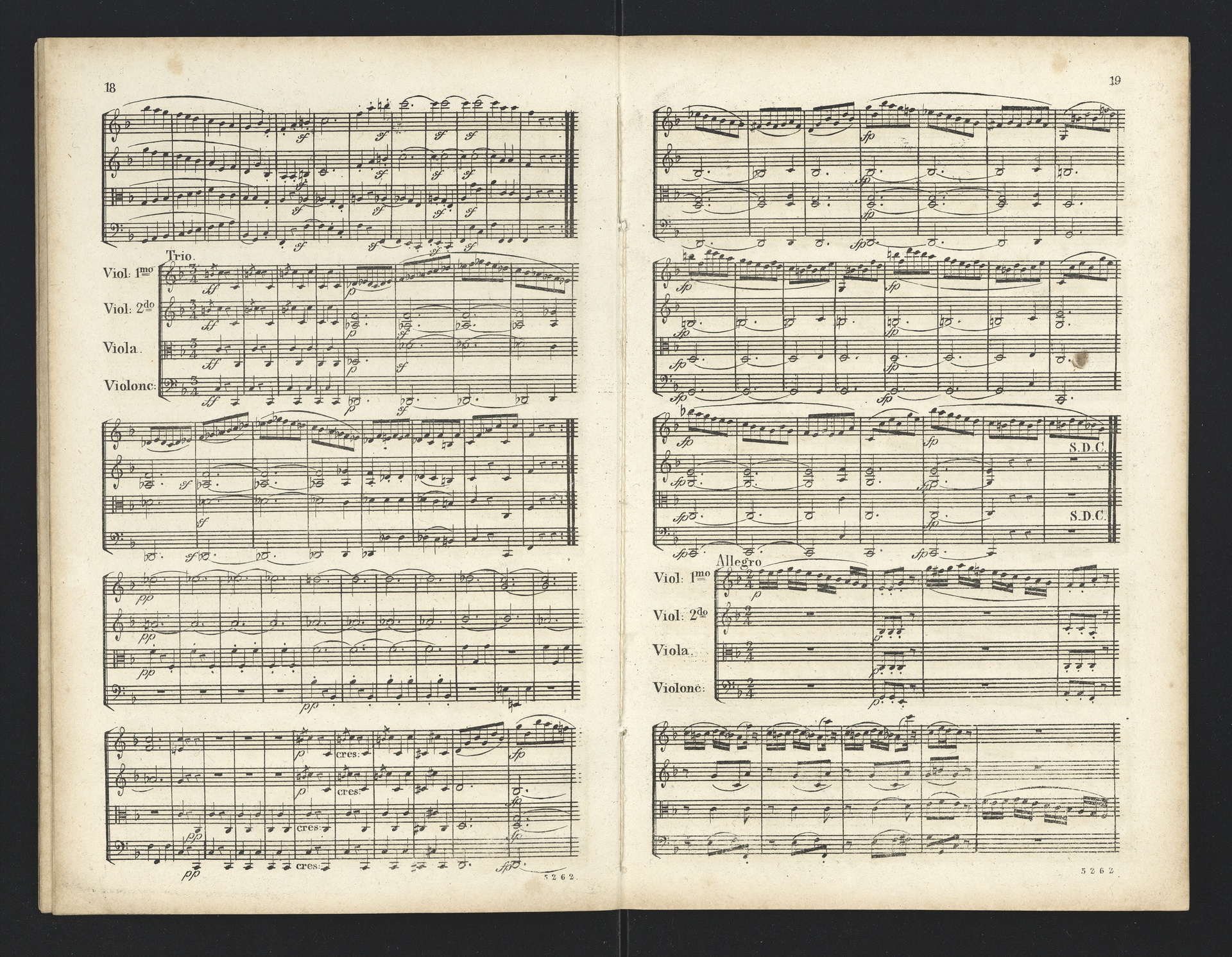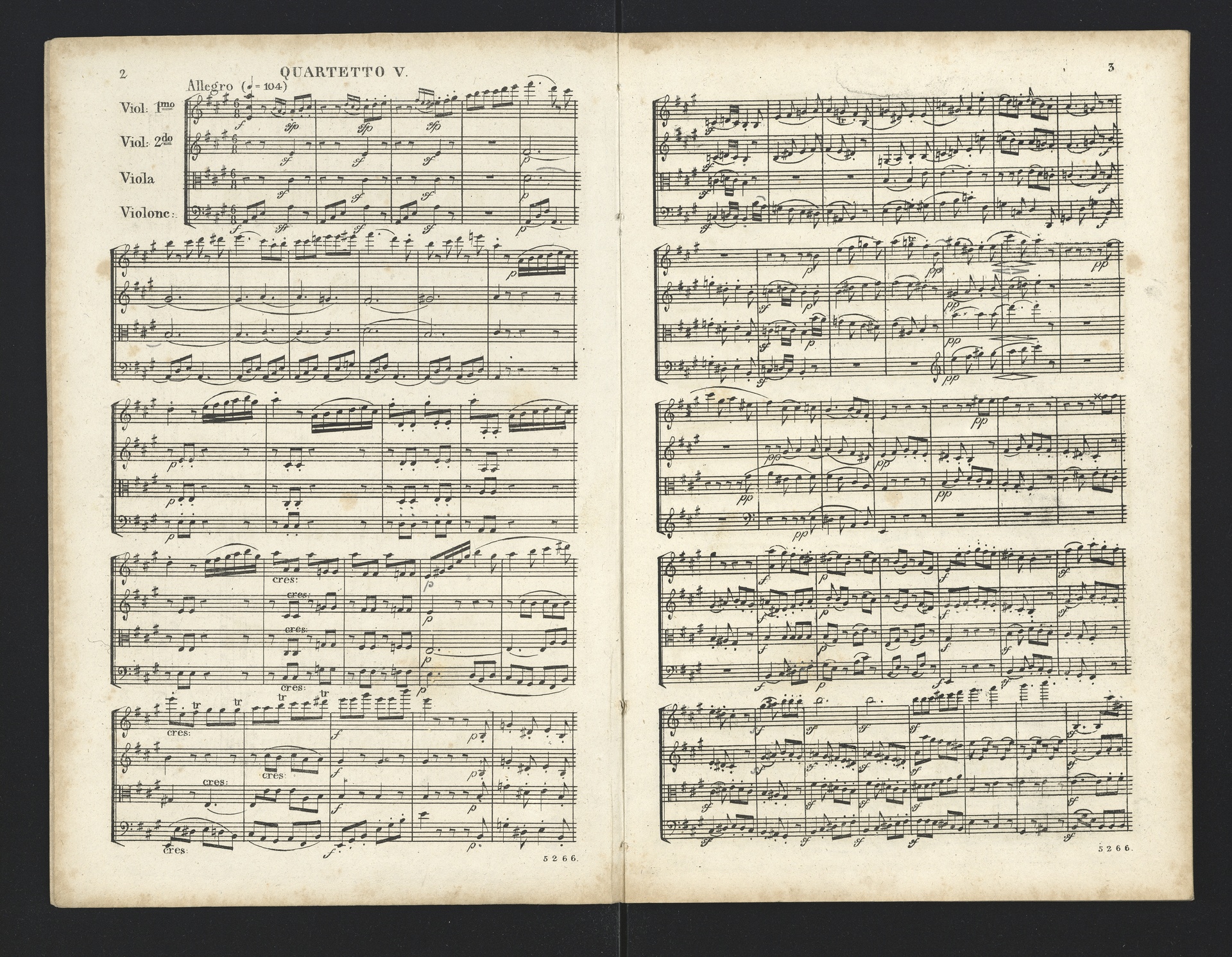 Ludwig van Beethoven, Quartette für 2 Violinen, Viola, Violoncello (F-Dur, G-Dur, D-Dur, c-Moll, A-Dur) op. 18, 1-5, Partitur, André, 5262-5266