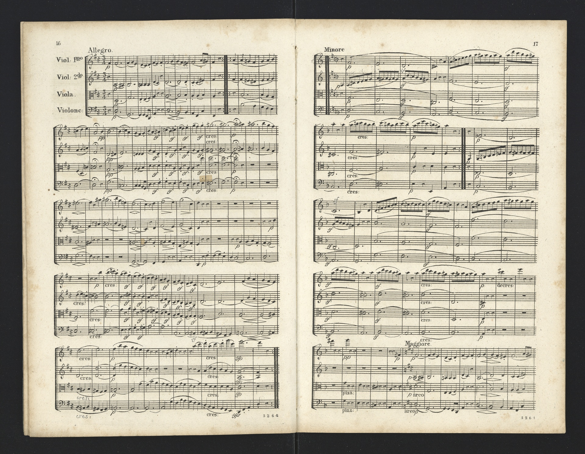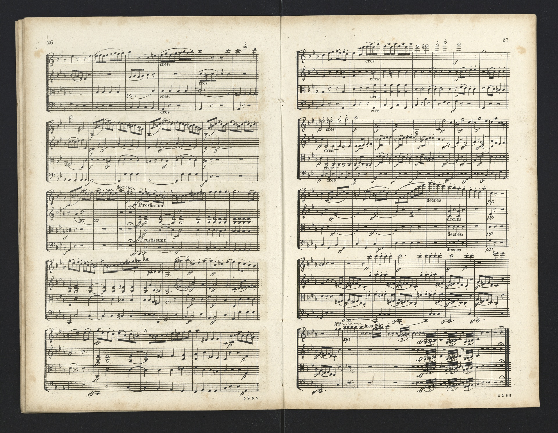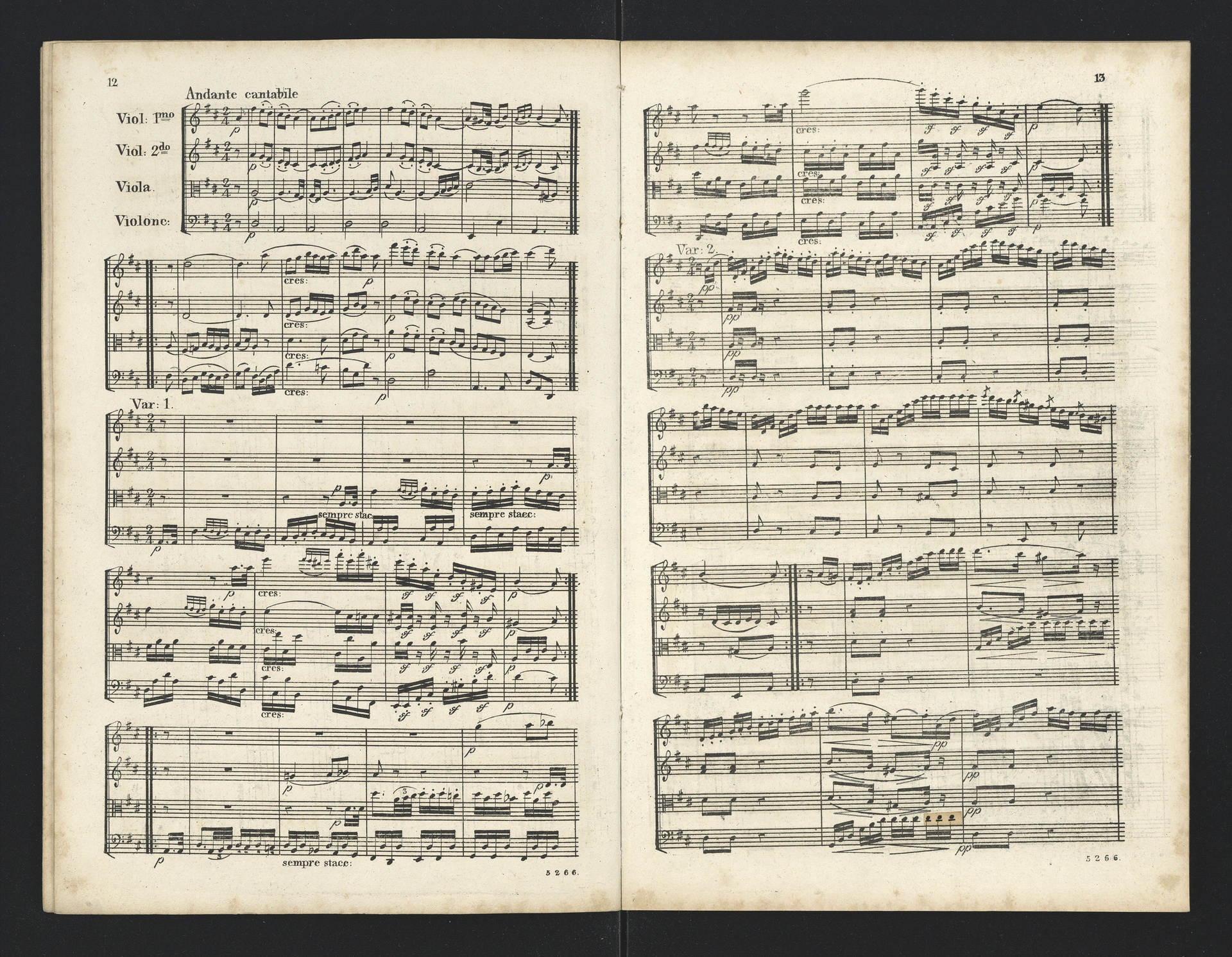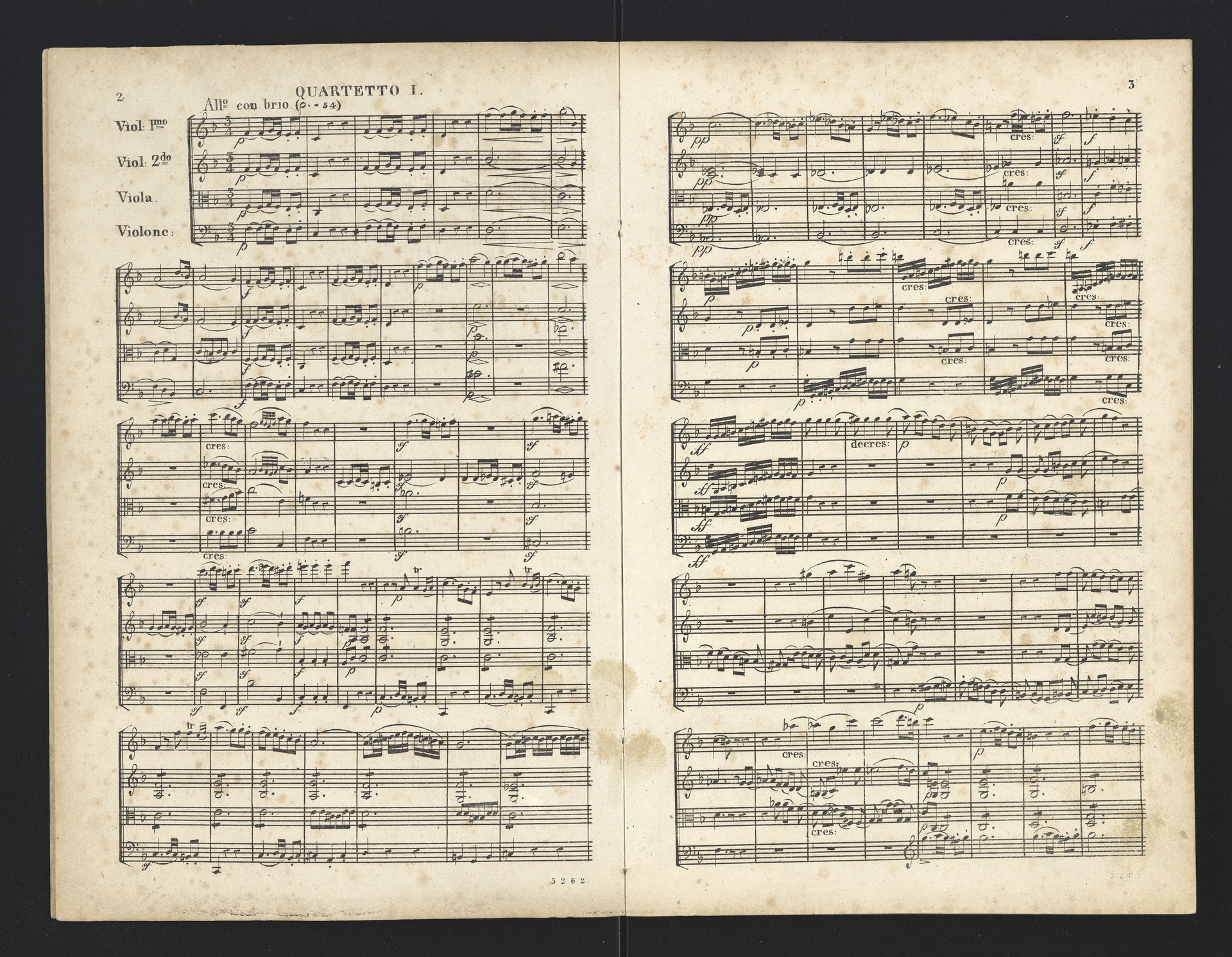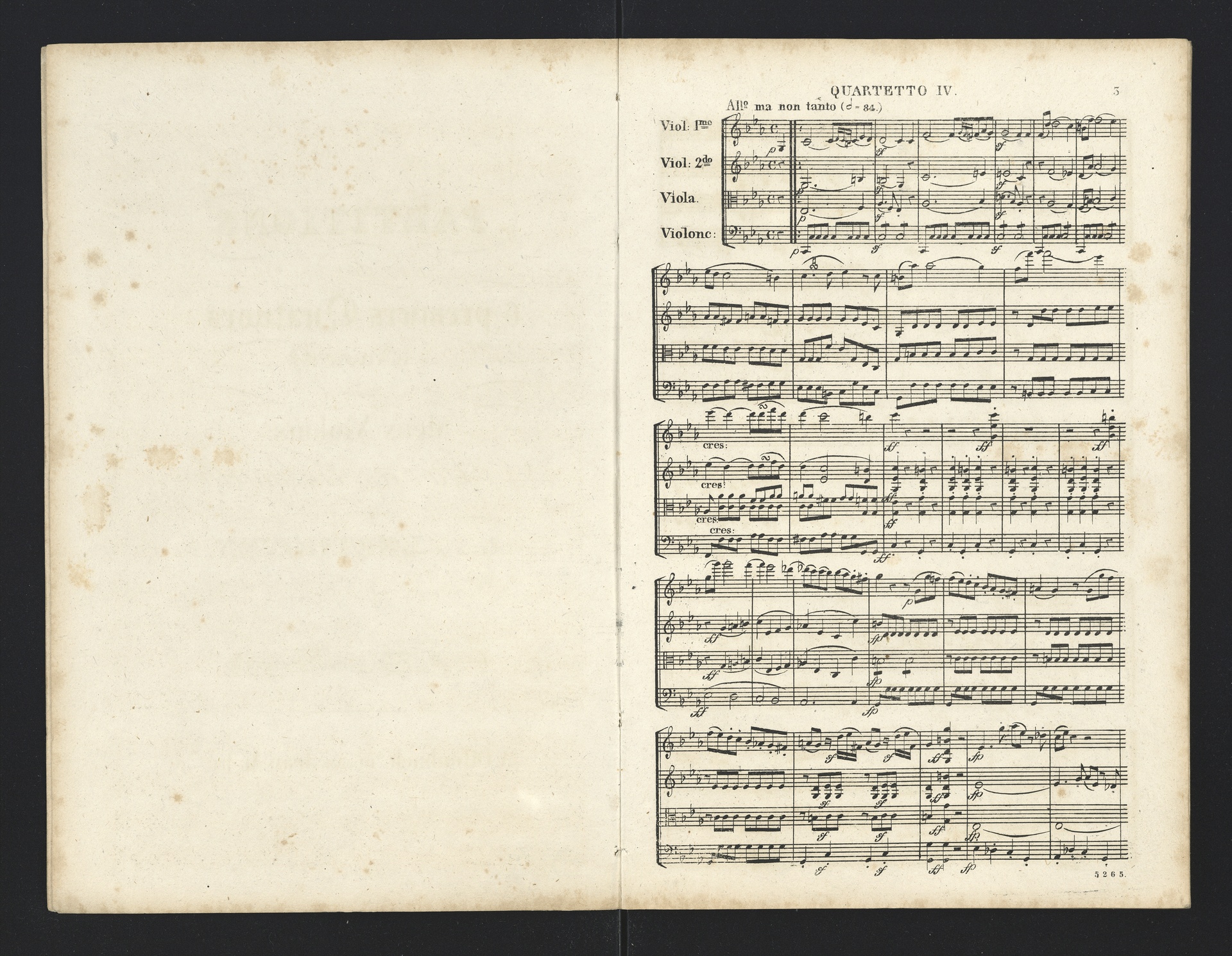Ludwig van Beethoven, Quartette für 2 Violinen, Viola, Violoncello (F-Dur, G-Dur, D-Dur, c-Moll, A-Dur) op. 18, 1-5, Partitur, André, 5262-5266