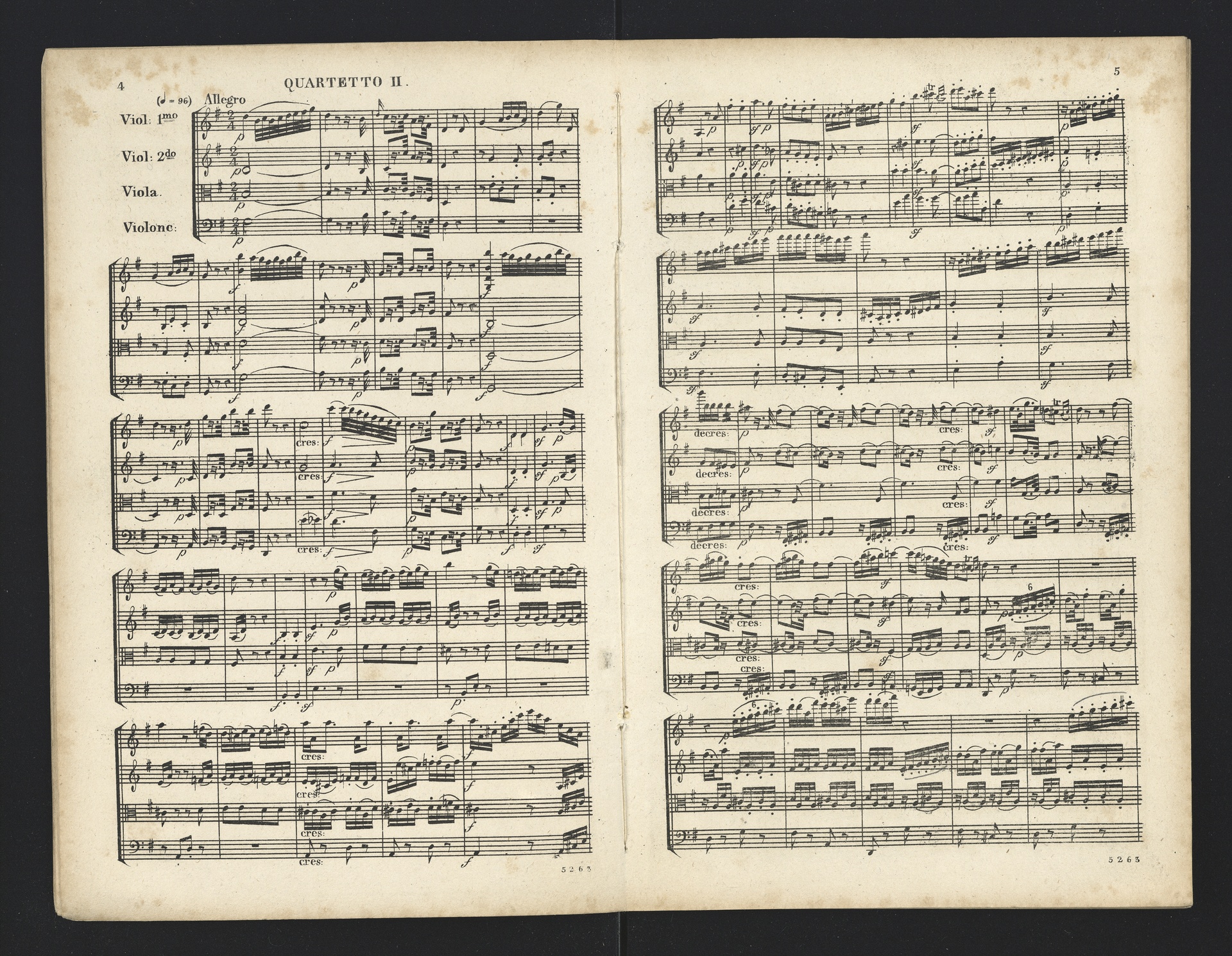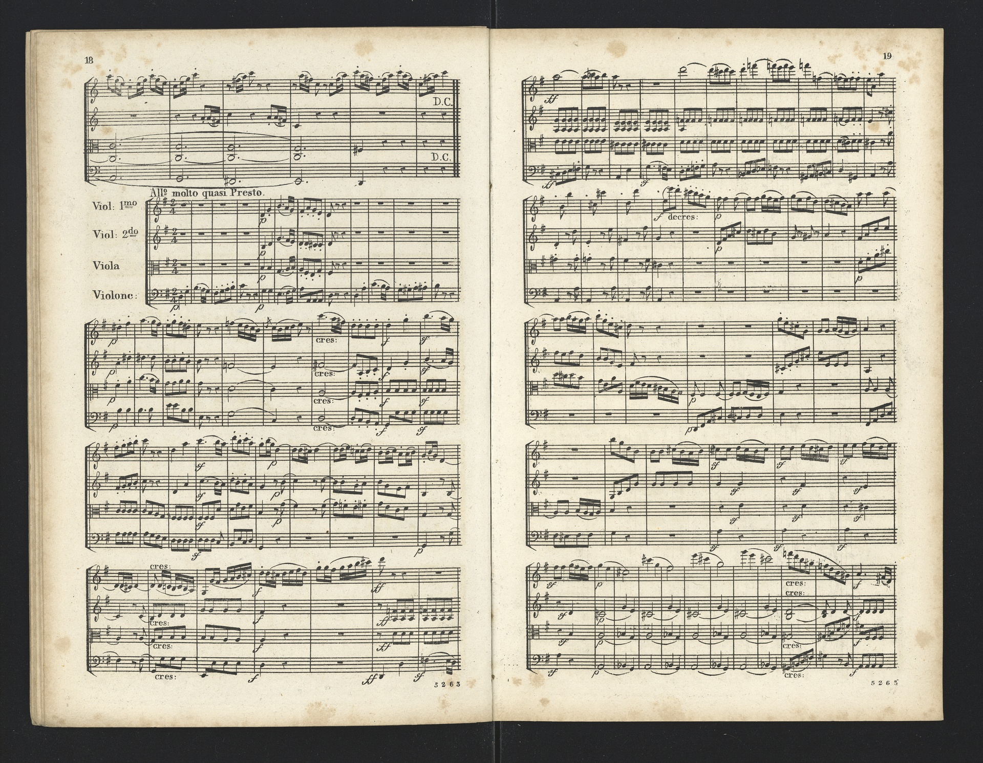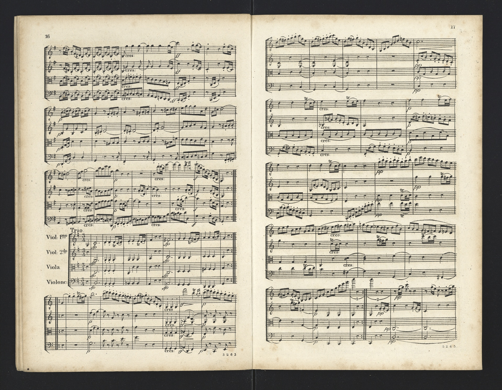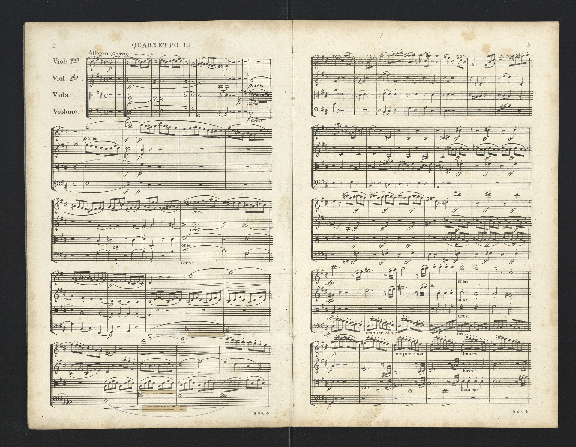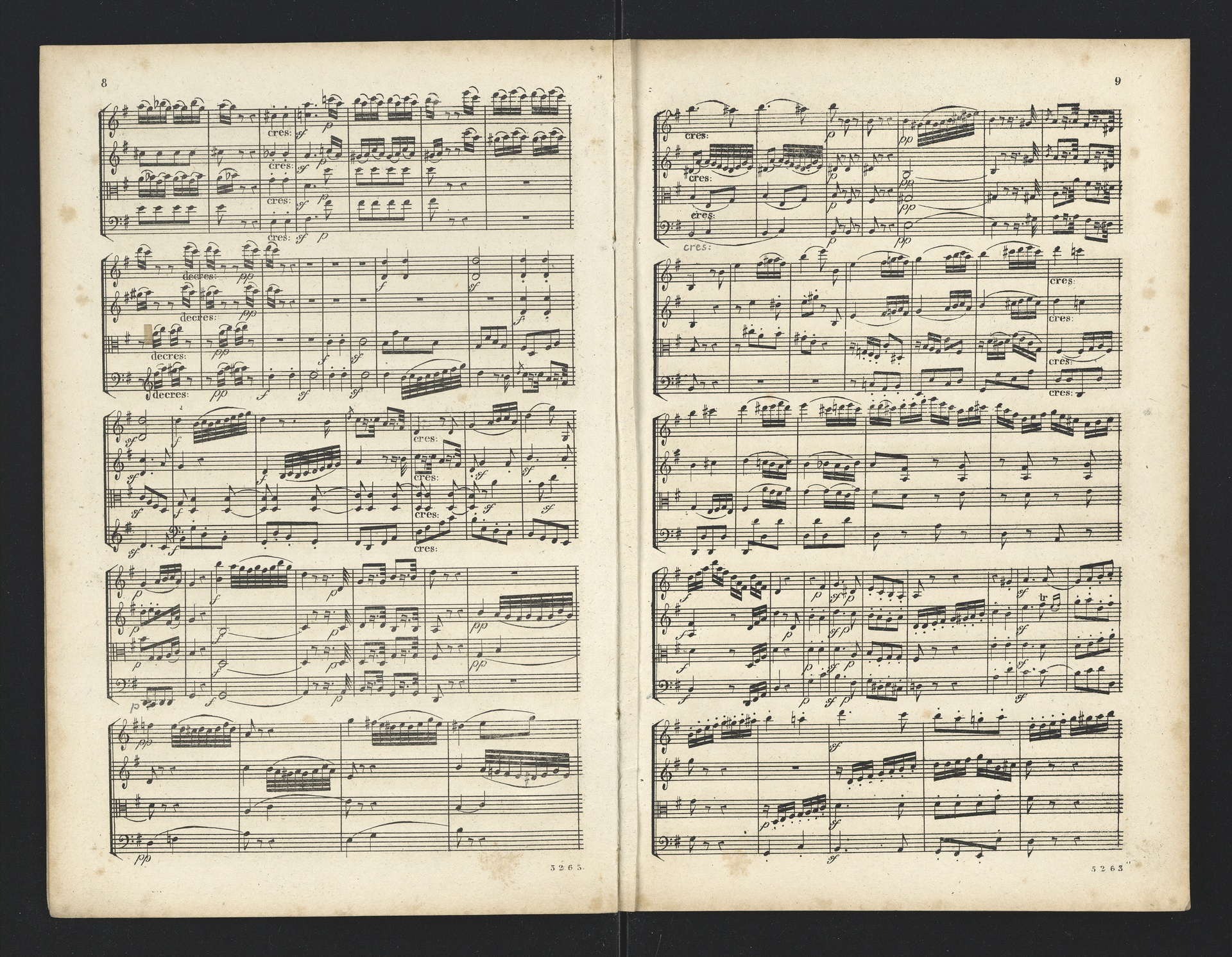 Ludwig van Beethoven, Quartette für 2 Violinen, Viola, Violoncello (F-Dur, G-Dur, D-Dur, c-Moll, A-Dur) op. 18, 1-5, Partitur, André, 5262-5266