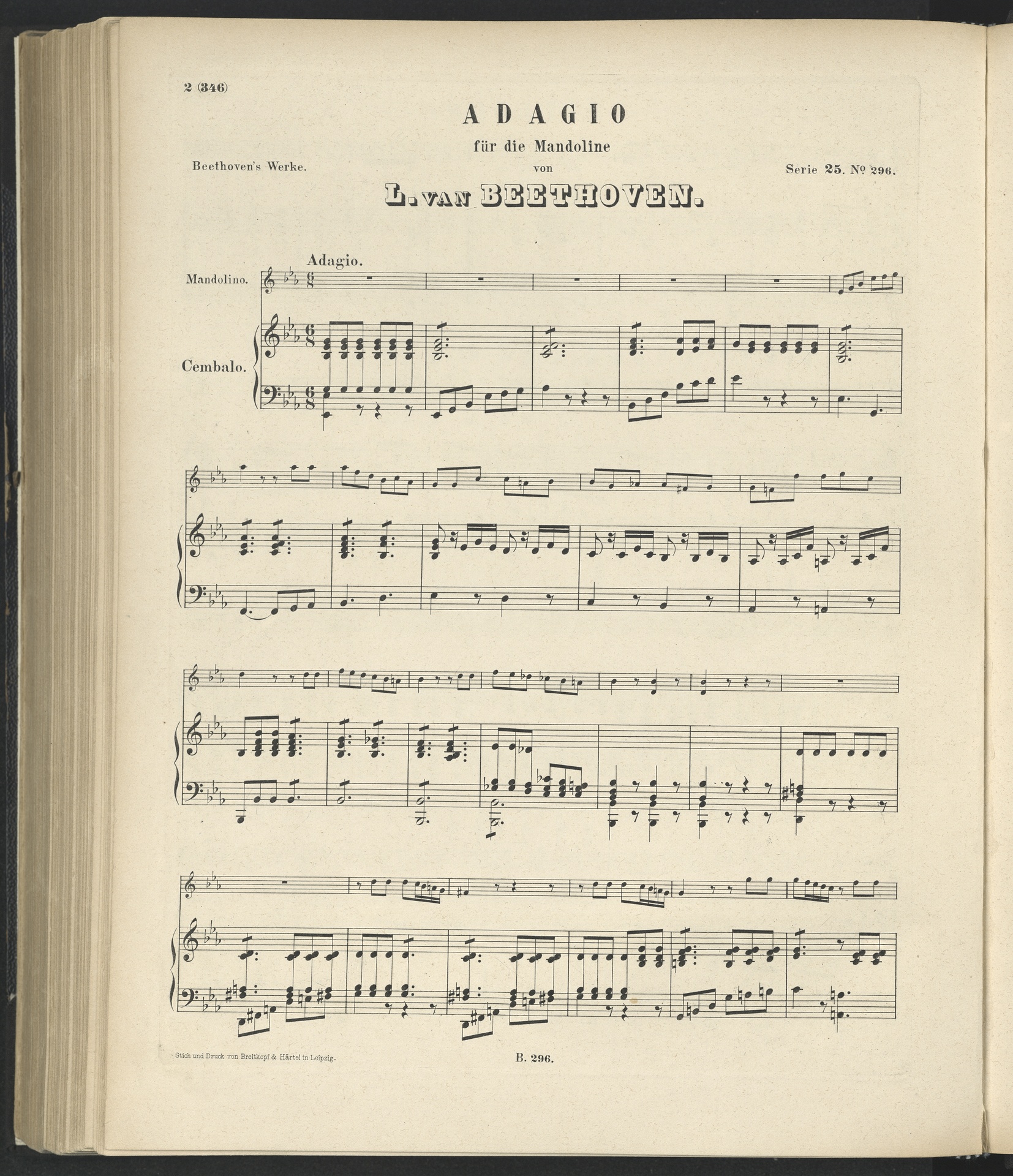 Ludwig van Beethoven, Adagio für Mandoline und Klavier (Es-Dur) WoO 43b, Klavierpartitur, Breitkopf und Härtel, 296