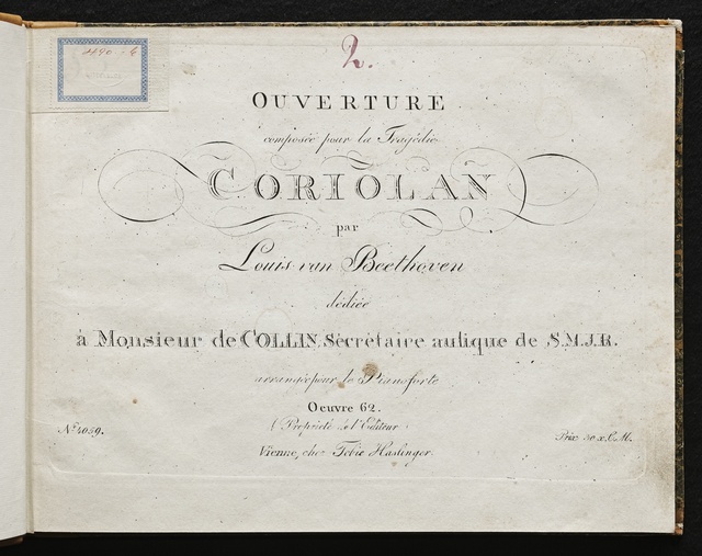 Coriolan, a tragedy by the Austrian writer Heinrich Joseph von Collin (1771-1811), was first performed on 23 November 1802. It was extremely successful and continued to be performed until 5 March 1805. Yet it remains unclear why Beethoven only wrote the overture in spring 1807 when the tragedy had long since disappeared from the stage. Perhaps the composer and dramatist joined forces against the theatre management in pursuit of a common goal. At the end of 1806 there was a change of director at the imperial court theatre: Peter von Braun left and the three Princes Lobkowitz, Schwarzenberg and Esterhazy took over the running of the theatre and its artistic direction. Both Beethoven and Collin had had problems with Braun and felt cheated by him. It might very well be that they wanted this joint venture to draw the attention of the new theatre directors to themselves. In fact the overture was first performed in the Palais Lobkowitz in March 1807. Although the play was given in April 1807 once more with Beethoven's music, it was never included in the programme again.